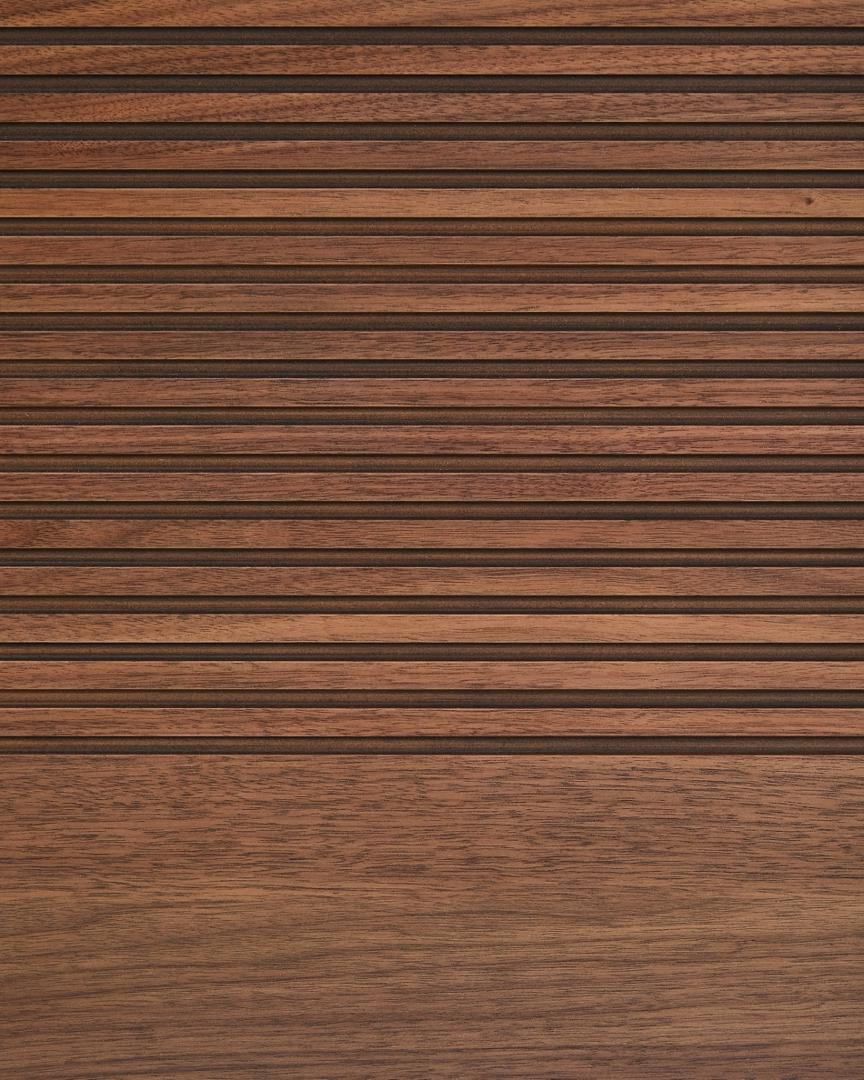 Norlen отдаёт дань уважения дизайну 1950-х годов в современной интерпретации, сочетая минималистичные формы и винтажные детали. Слегка закруглённые углы и деревянное основание создают ностальгическую атмосферу, переосмысленную благодаря чистым линиям и современным пропорциям. Изготовлен из орехового шпона с изящной горизонтальной линейной фрезеровкой, что добавляет индивидуальности и визуальной глубины, а встроенная светодиодная лента в верхней части освещает комнату тёплым и приятным светом 3000K.