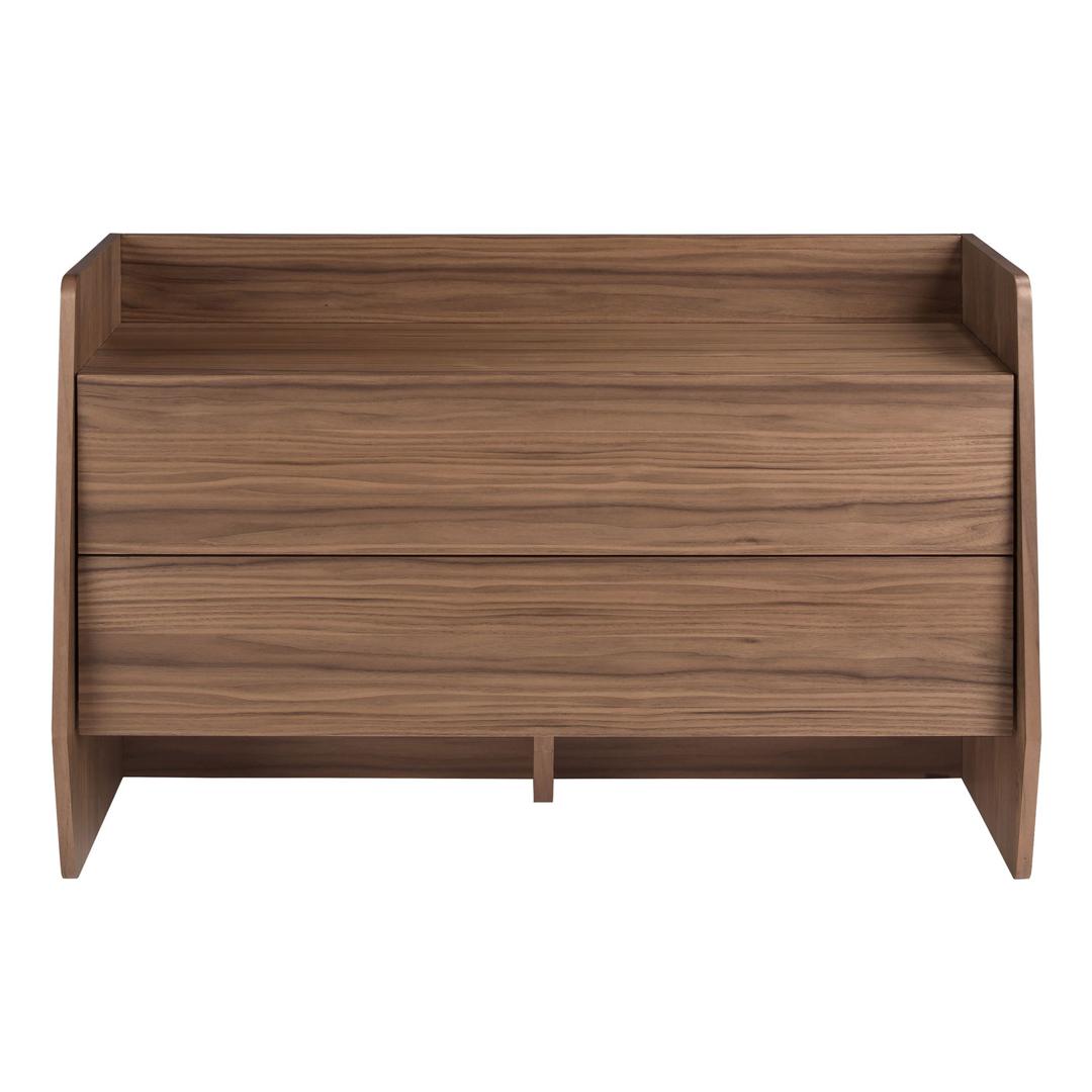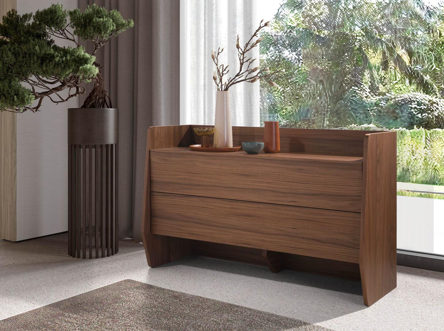 Комод с современным дизайном, с деревянной конструкцией, облицованной натуральным шпоном ореха, и оригинальными ножками из натурального шпона ореха. Имеет большое пространство для хранения с 2 ящиками с системой открывания ногтем и системой плавного закрывания.