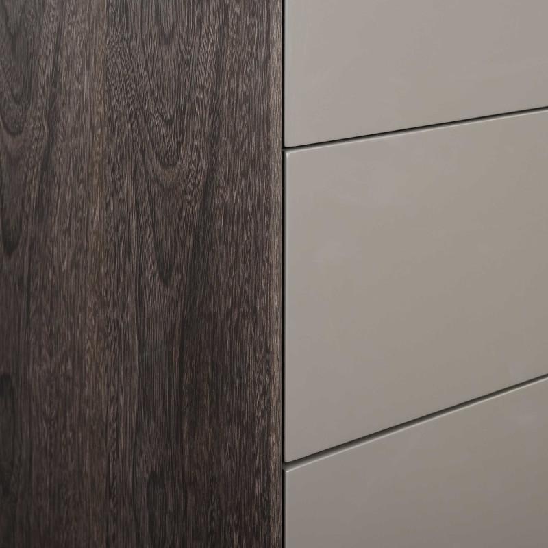 Комод от итальянского бренда Fratelli Barri. Модель изготовлена из высококачественной МДФ. Боковины в отделке шпоном дымчатого дуба, фасады ящиков в отделке матовым лаком. Модель оснащена 5 выдвижными ящиками с механизмом открывания soft-closing. Данный предмет — часть новой коллекции Concept от Fratelli Barri, включающей всю корпусную мебель для спальни, гостиной и столовой. Вы можете оформить интерьер вашей квартиры или дома в едином стиле.