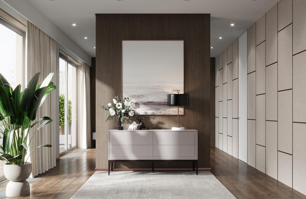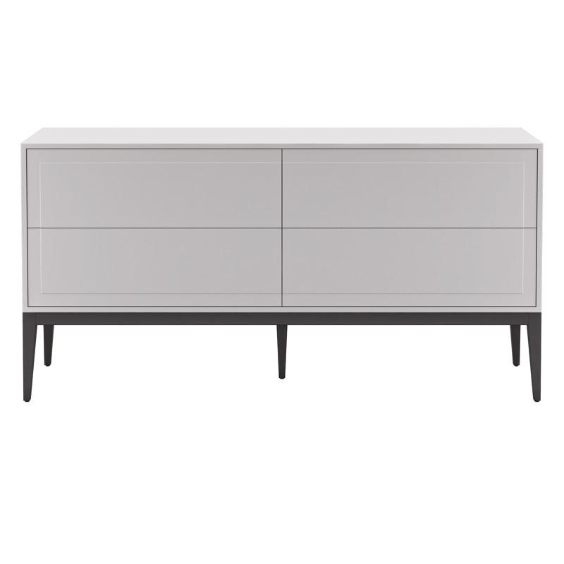 Широкий стильный комод с четырьмя ящиками, на высоких ножках из коллекции Marbella от бренда MOD Interiors. Дизайнерская фрезеровка на фасадах в современном стиле. Отделка выполнена в приятном сером матовом оттенке. Высококачественная МДФ высокой плотности. Ножки из шпонированного массива березы — темно-коричневая (почти черная) древесина с натуральным рельефом. Внутри ящики оснащены системой легкого открывания push-to-open. Обратите внимание на достаточно большую ширину комода — 159 см.