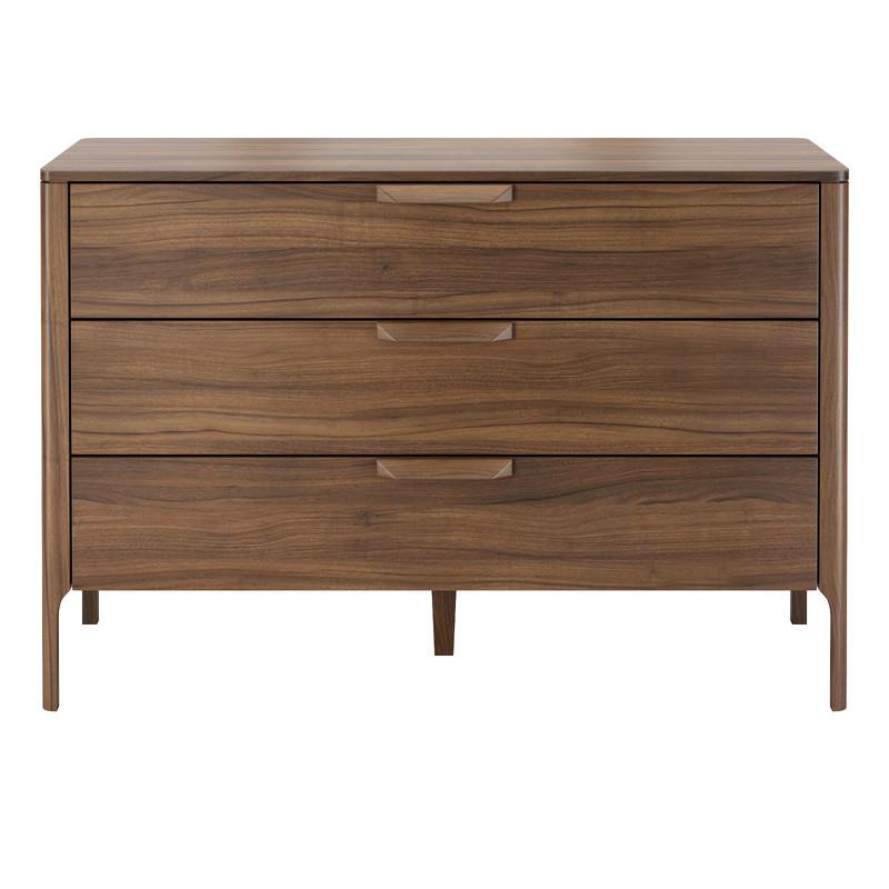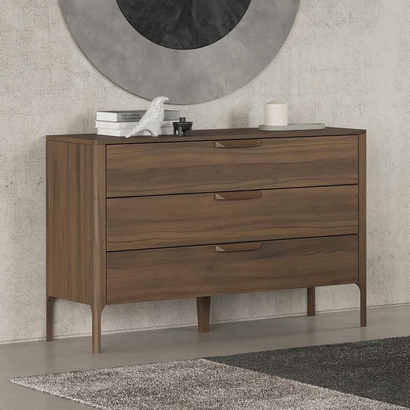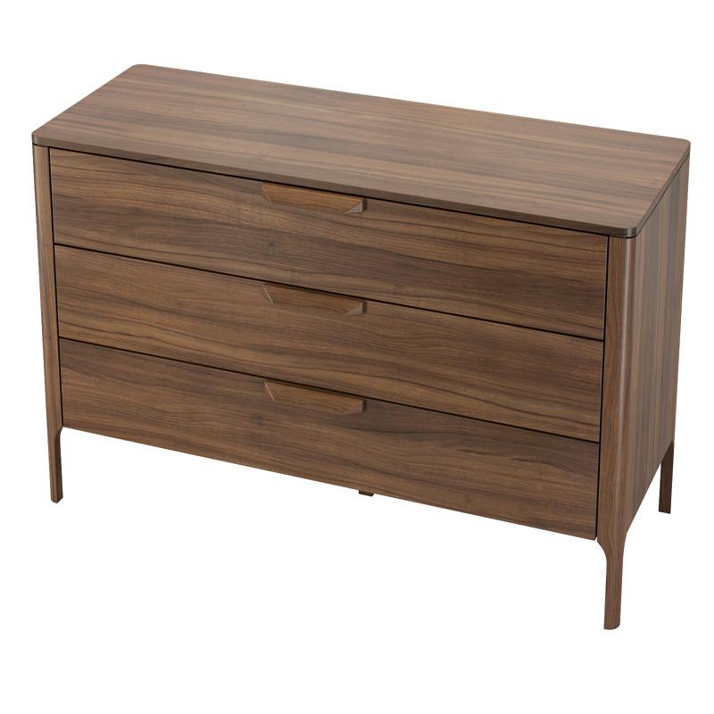 Компактный комод бренда MOD Interiors можно использовать в спальне, гостиной или столовой в современном стиле. Корпус и фасады комода изготовлены из высококачественного МДФ высокой плотности, Ножки и ручки - из массива дерева. Отделка - натуральный шпон американского ореха. Комод оснащен тремя выдвижными ящиками. Все ящика снабжены направляющими системы soft-close. Уникальная система последнего поколения добавляет невероятную плавность открывания/закрывания. Высота фасадов каждого ящика 20 см Высота ножек 18 см