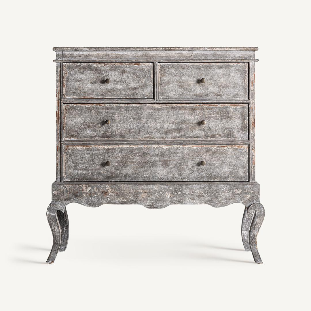 Комод Formelle от VICAL переосмысливает провансальский стиль, используя состаренную серую отделку, которая подчеркивает текстуру древесины пихты. Его мягкие линии и спокойный вид делают его идеальным предметом мебели для спален, стремящихся к теплу и вневременной романтике. Ширина: 103 см, Глубина: 38 см, Высота: 102 см