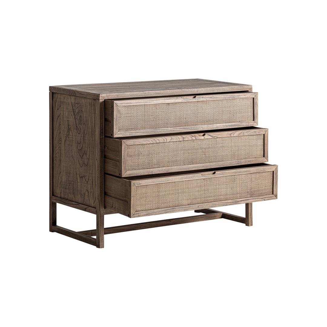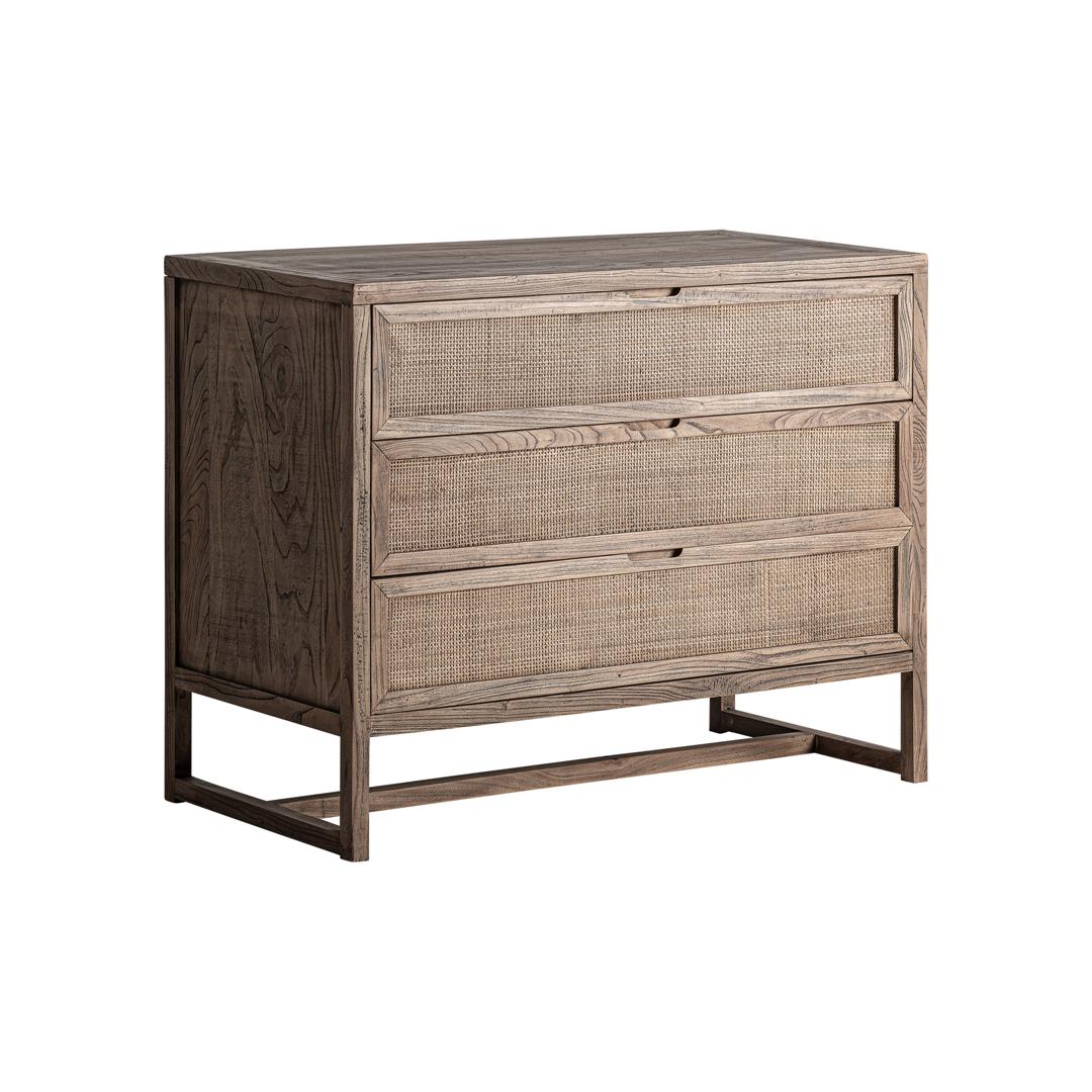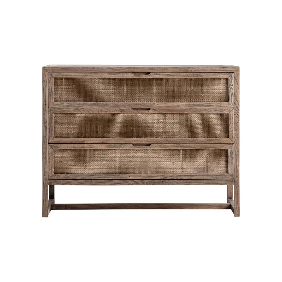 Комод, изготовленный из вяза коричневого цвета в сочетании с ротангом. Ширина: 105 см, Глубина: 50 см, Высота: 80 см