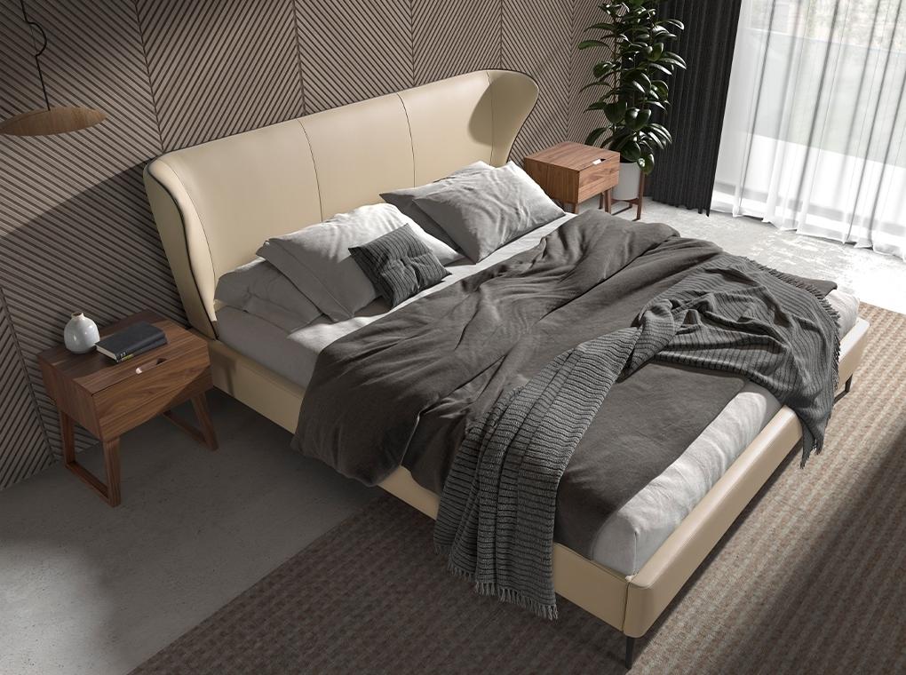 Кровать 7157/GC2002B от фабрики Angel Cerda – королевский размер и впечатляющее изголовье. Кровать 7157/GC2002B – двуспальный предмет мебели для вашей спальни. Здесь оригинальное изголовье выступает главным элементом в дизайне. Его форма и габариты подстроены под королевский размер самой кровати. Это больше двух метров в длину и ширину. На такой кровати вы наверняка почувствуете полную свободу движений во сне! Кровать состоит из рамочного каркаса на металлических ножках, деревянного изголовья и реечного основания из сосновой древесины. Изголовье трапециевидное, с загнутыми краями. Оно смягчено наполнителем для придания мягкости. Кровать полностью обита синтетической кожей песочно-бежевого цвета. Этот материал практичный, износостойкий, тактильно приятный. Ножки окрашены в коричневый цвет, дополнены накладками для улучшения устойчивости и защиты напольного покрытия от повреждений. Многоламельное основание, входящее в комплект, изготовлено из прочной сосновой древесины. Оно создает необходимую вентиляцию и обеспечивает комфортную амортизацию. Размеры: ширина – 217 см, высота – 110 см, длина – 220 см. Вес изделия – 95 кг. Потребуется самостоятельная сборка. Инструкция и крепеж включены в комплектацию. Для данной модели подойдет матрас размером 180 на 200 см. Его также можно приобрести в нашем магазине.