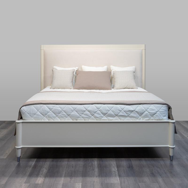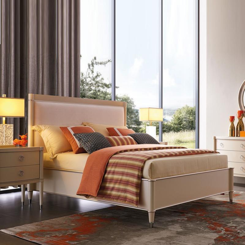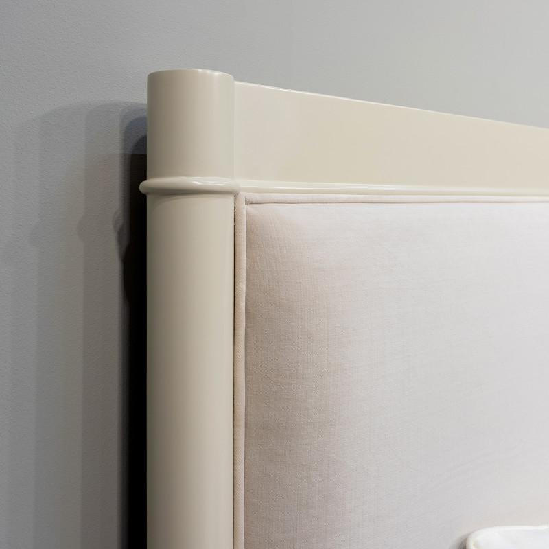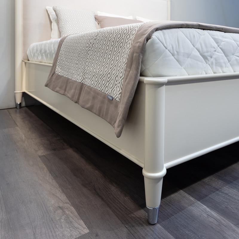 Высокая кровать от итальнякого бренда Fratelli Barri с прямыми ножками и мягким изголовьем в стиле неоклассика. Основание кровати полностью в отделке бежевый матовый лак. На ножках металлические колпачки. Кровать выполнена из массива дерева и высококачественного МДФ класса Е1. Изголовье обито тканью из коллекции фабрики в бежевых тонах. Тип ткани - велюр. Состав ткани - 80% полиэстер, 20% нейлон. Цвет фурнитуры - хром. Размер спального места — 180*200 см. Кровать поставляется в комплекте с решеткой. Покрывала, подушки и матрас не входят в комплект поставки.
