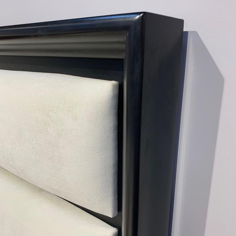 Двуспальная кровать с высоким изголовьем с текстильными вставками в шпоне вишни. Модель выполнена в стиле ар-деко, имеет деревянную базу и ножки в двух цветах. Строгая геометрия силуэта смотрится очень современно. Кровать идеально сочетается с корпусной мебелью из коллекции Prato фабрики Fratelli Barri. Размер спального места — 180*200 см. Покрывала, подушки и матрас не входят в комплект поставки. Решетка в комплекте.