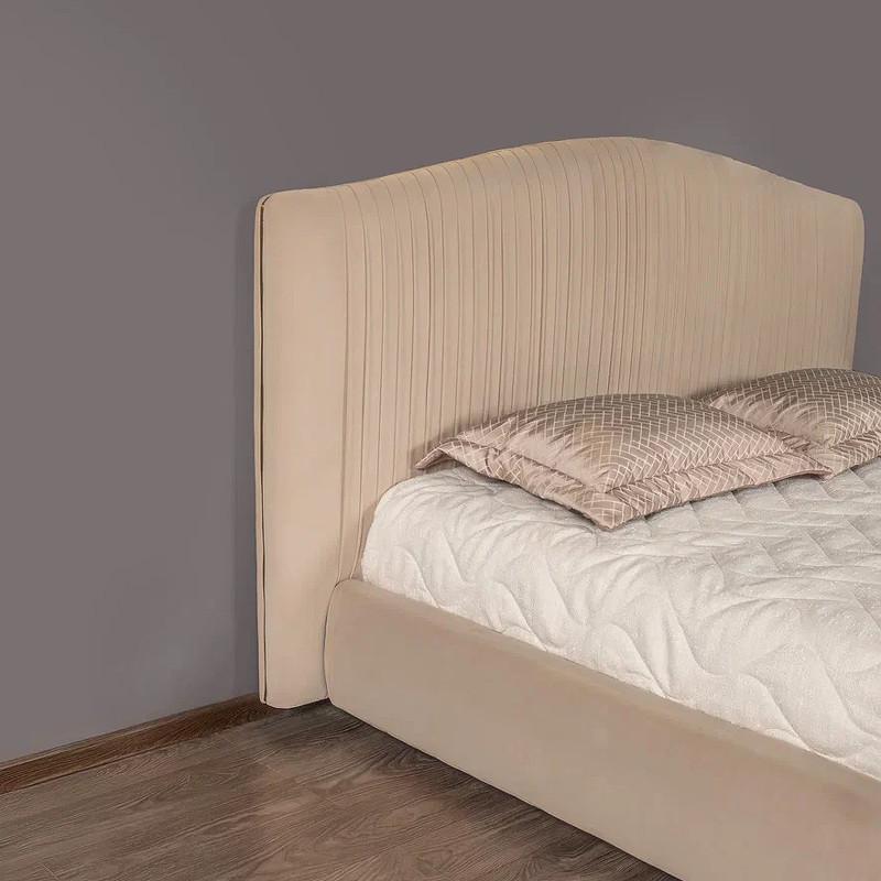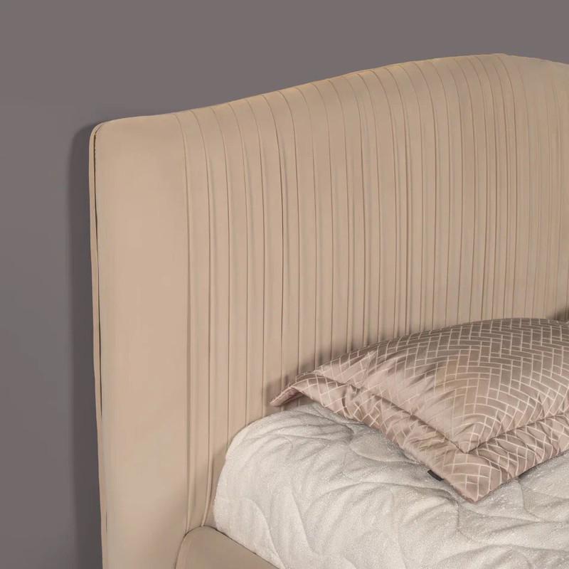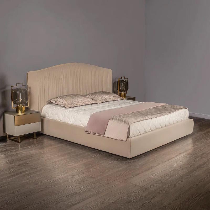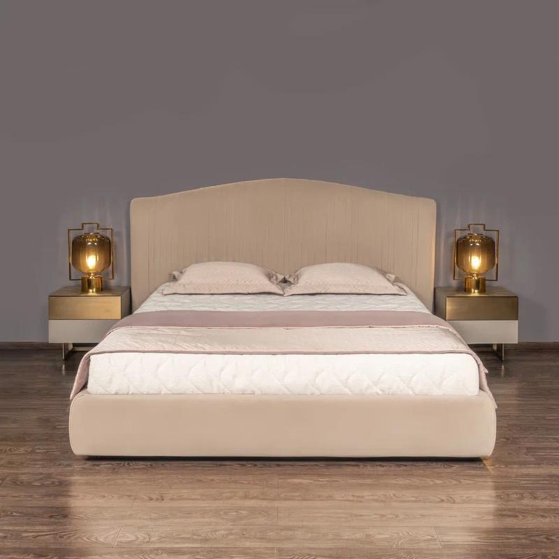 Кровать с мягким изголовьем от итальянского бренда Fratelli Barri. Металлические декоративные детали - цвет латунь. Размер спального места — 180*200 см. Постельные принадлежности и матрас не входят в комплект.