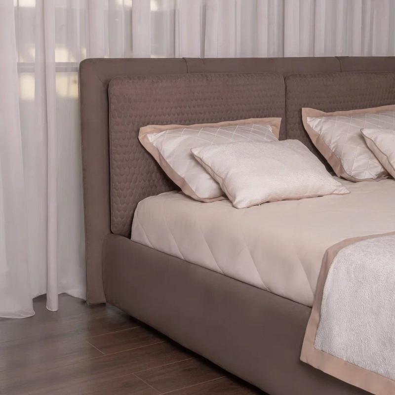 Кровать с мягким изголовьем от итальянского бренда Fratelli Barri коллекции Farini. Основание, изголовье и декоративная часть изголовья с рисунком "соты". Ножки в черном матовом цвете. Размер спального места — 180*200 см. Постельные принадлежности и матрас не входят в комплект.