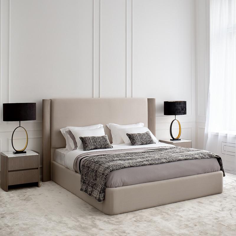 Двуспальная кровать коллекции Noli от итальянского бренда Fratelli Barri. Кровать в отделке тканью и натуральным шпоном вяза. Размер спального места — 180*200 см. Постельные принадлежности и матрас не входят в комплект.
