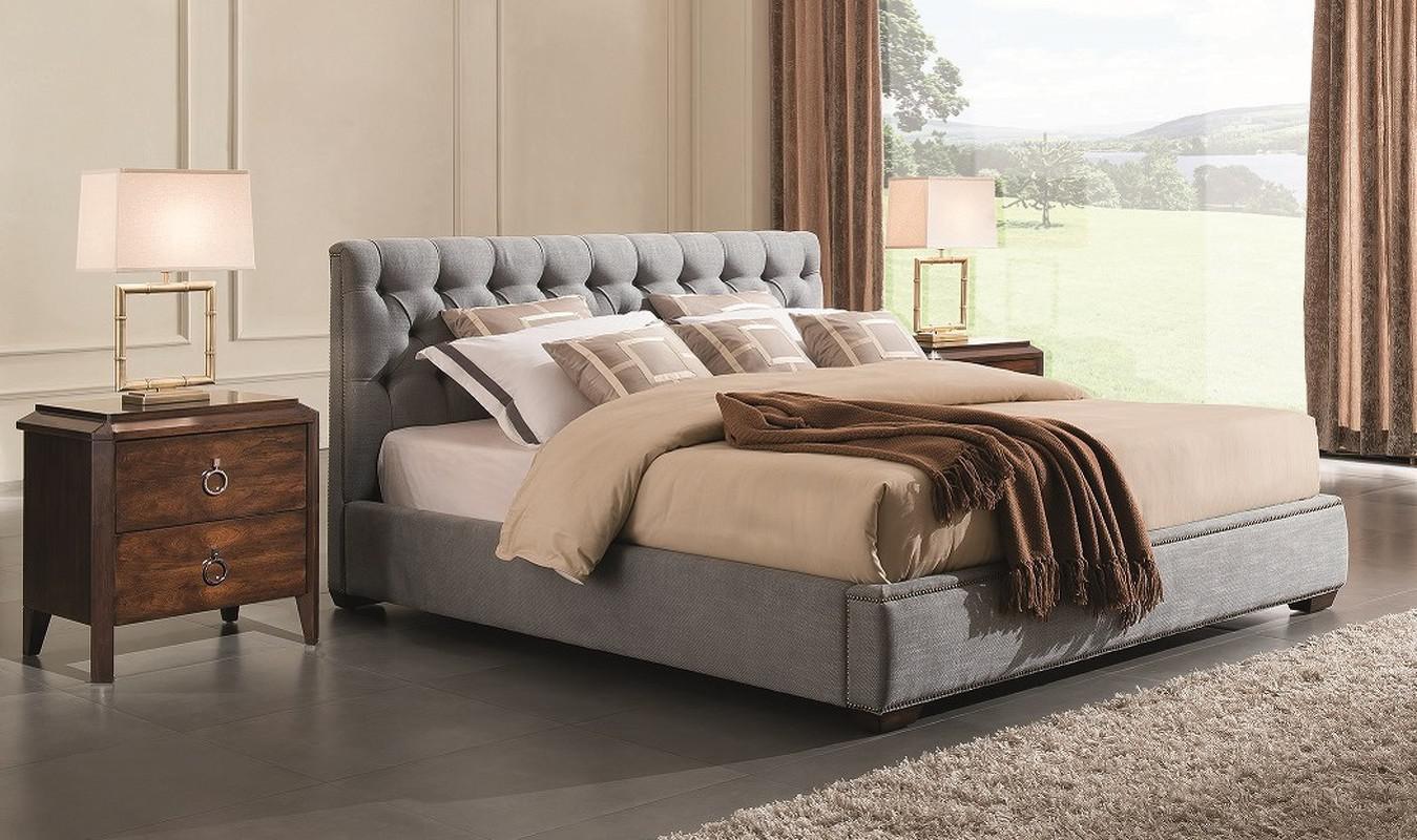 Европейская двуспальная кровать с мягким изголовьем и базой. Сделана из массива дерева и высококачественной МДФ высокой плотности, отделка в натуральном шпоне вишни и темно-коричневые ножки. Кровать идеально сочетается с корпусной мебелью из коллекции Mestre фабрики Fratelli Barri. Размер спального места — 160*200 см. Покрывала, подушки и матрас не входят в комплект поставки. Решетка в комплекте.