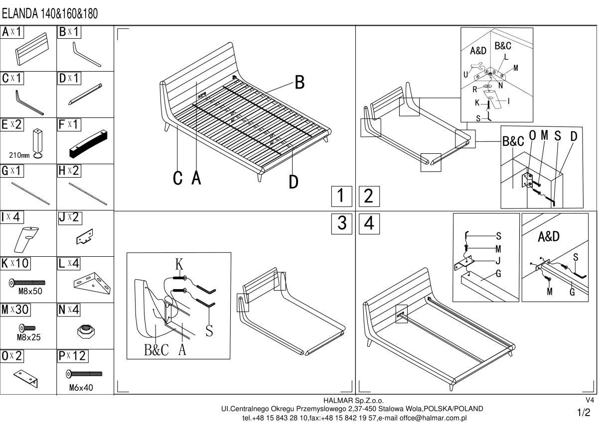 Кровать Halmar Кровать Halmar ELANDA (светло-серый) 160/200 арт. V-CH-ELANDA_160-LOZ-J.POPIEL