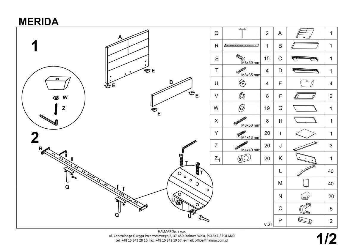Кровать Halmar Кровать Halmar MERIDA (светло-серый) 160/200 арт. V-CH-MERIDA-LOZ-J.POPIEL
