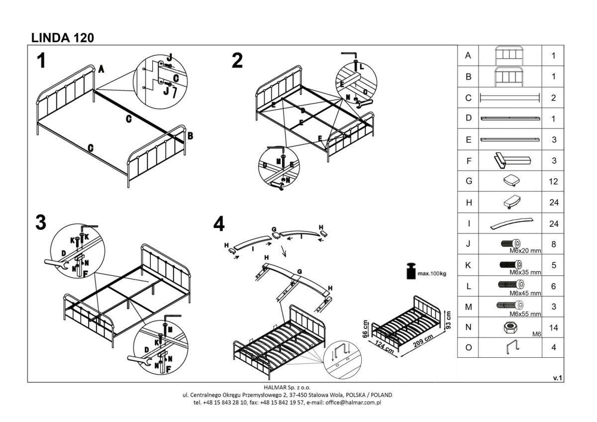 Кровать Halmar Кровать Halmar LINDA (черный) 120/200 арт. V-CH-LINDA_120-LOZ-CZARNY