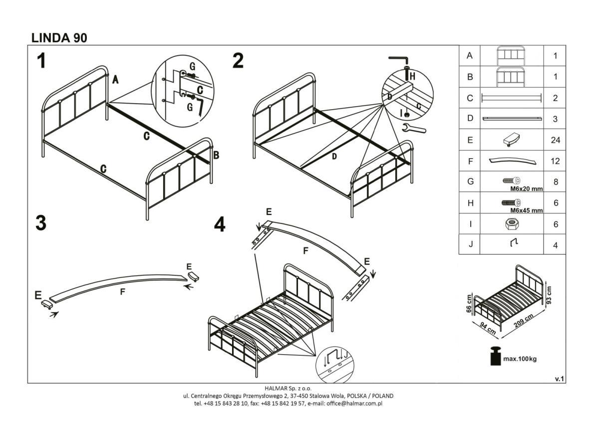 Кровать Halmar Кровать Halmar LINDA (черный) 90/200 арт. V-CH-LINDA_90-LOZ-CZARNY