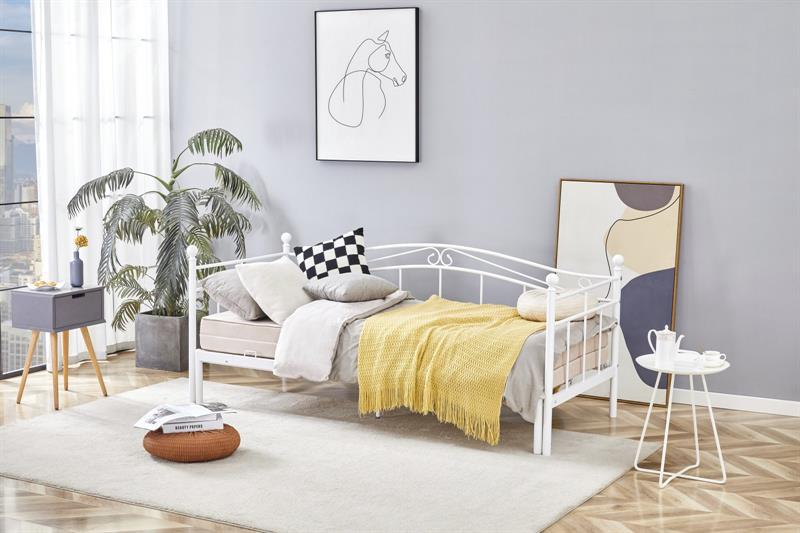 Вес, кг: 33 / Высота (см): 86 / Гарантия, мес.: 12 / Глубина (см): 207 / Количество коробок: 1 / Материал каркаса: металл / Необходимость сборки: да / Размер матраса (см): 90/200 / Размер упаковки 1: 2,09/0,95/0,09 / Страна производитель: Китай / Цвет: белый / Ширина (см): 104-184