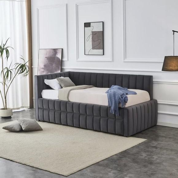 Вес, кг: 63,7 / Высота (см): 95 / Гарантия, мес.: 12 / Глубина (см): 229 / Количество коробок: 2 / Материал каркаса: вельвет / Необходимость сборки: да / Размер матраса (см): 90/200 / Размер упаковки 1: 1,14/0,98/0,24 / Размер упаковки 2: 2,11/0,98/0,19 / Страна производитель: Китай / Цвет: серый / Ширина (см): 105