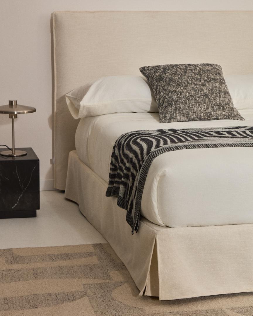 Кровать со съемным чехлом сочетает в себе комфорт, функциональность и дизайн, создавая элегантное дополнение к спальне. Чехол из высококачественного плотного шенилла имеет мягкую бархатистую текстуру и обработан против пятен, что облегчает уход и продлевает срок службы. Внутренняя часть изготовлена из сертифицированной древесины FSC Mix Credit, полученной из ответственно управляемых источников. Основание кровати обито мягкой тканью, поэтому основание не требуется, обеспечивая жесткость и устойчивость матраса. Ткань сертифицирована по стандарту OEKO-TEX® STANDARD 100, что гарантирует безопасность и экологичность производства. Изголовье кровати, произведенное локально в Европе, способствует сокращению выбросов CO₂ и отражает приверженность качеству, комфорту и устойчивому развитию.
