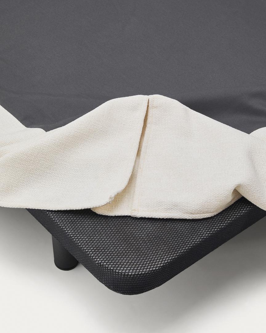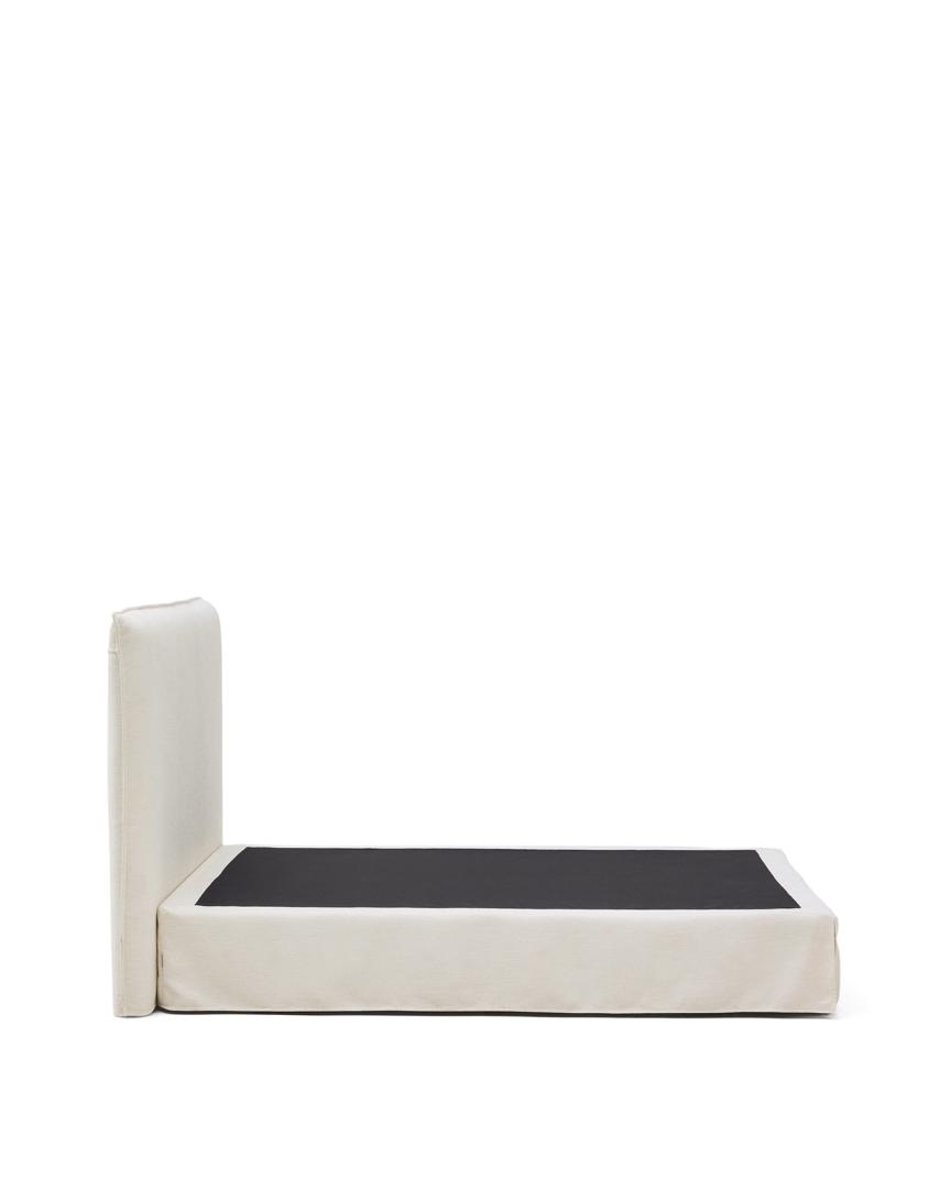 Кровать со съемным чехлом сочетает в себе комфорт, функциональность и дизайн, создавая элегантное дополнение к спальне. Чехол из высококачественного плотного шенилла имеет мягкую бархатистую текстуру и обработан против пятен, что облегчает уход и продлевает срок службы. Внутренняя часть изготовлена из сертифицированной древесины FSC Mix Credit, полученной из ответственно управляемых источников. Основание кровати обито мягкой тканью, поэтому основание не требуется, обеспечивая жесткость и устойчивость матраса. Ткань сертифицирована по стандарту OEKO-TEX® STANDARD 100, что гарантирует безопасность и экологичность производства. Изголовье кровати, произведенное локально в Европе, способствует сокращению выбросов CO₂ и отражает приверженность качеству, комфорту и устойчивому развитию.