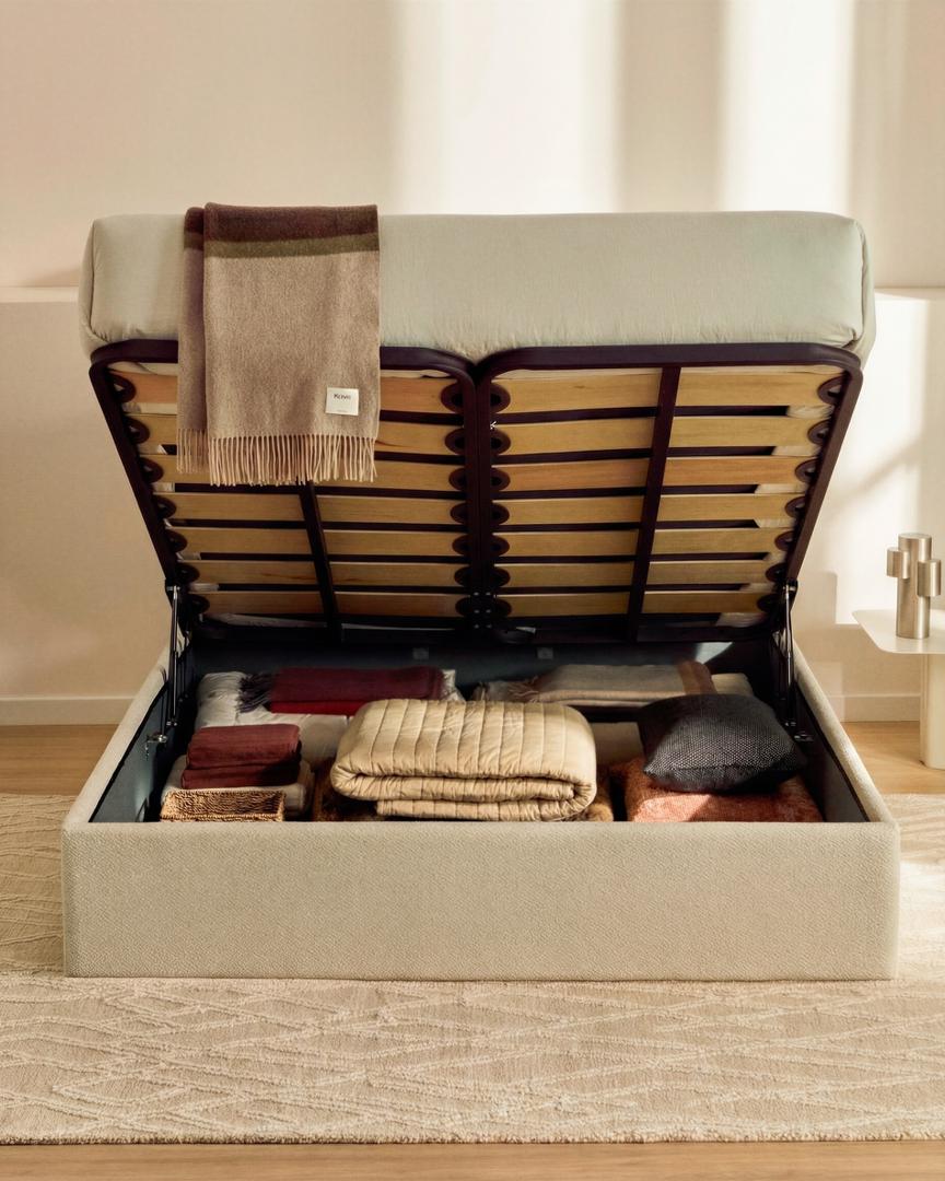 Основание кровати-пуфа Nelzi со съемным чехлом сочетает в себе дизайн и функциональность, позволяя максимально эффективно использовать пространство, сохраняя при этом лаконичный внешний вид. Система открывания с газовым поршнем и открытая планировка без перегородок позволяют максимально увеличить объем для хранения и упростить организацию пространства. Чехол из шенилла с мелкой структурой имеет мягкую текстуру и приятный на ощупь материал. Прочная, устойчивая к пятнам ткань позволяет легко удалять мех, что облегчает уход за кроватью.