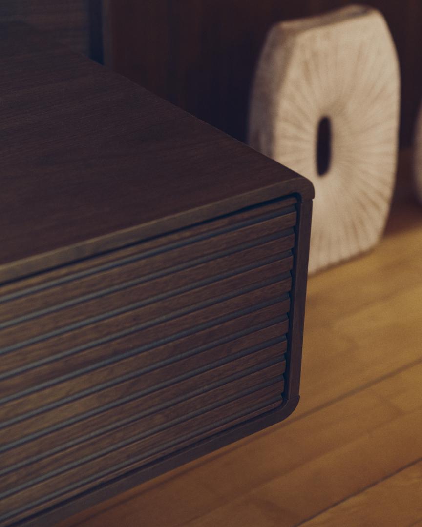 Norlen отдаёт дань уважения дизайну 1950-х годов в современной интерпретации, сочетая минималистичные формы и винтажные детали. Слегка закруглённые углы и деревянное основание создают ностальгическую атмосферу, переосмысленную благодаря чистым линиям и современным пропорциям. Изголовье, выполненное из орехового шпона с изящной горизонтальной линейной фрезеровкой, добавляет индивидуальности и визуальной глубины, а встроенная светодиодная лента в верхней части кровати наполняет комнату тёплым и приятным светом 3000K.