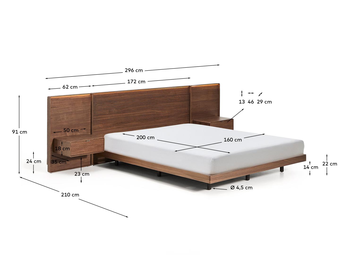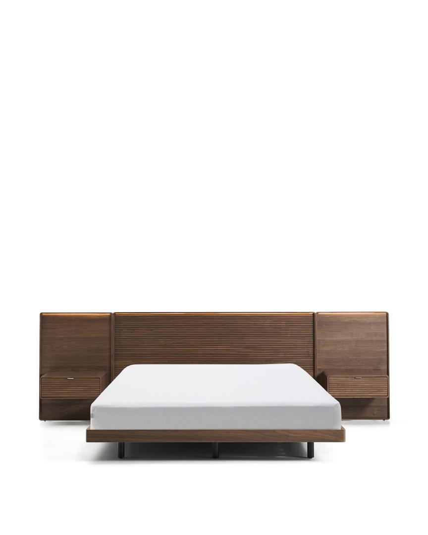 Кровать La Forma (ех Julia Grup) Кровать Norlen с 2 прикроватными тумбочками из орехового шпона с темной отделкой LED 160 x 200 см арт. 425231