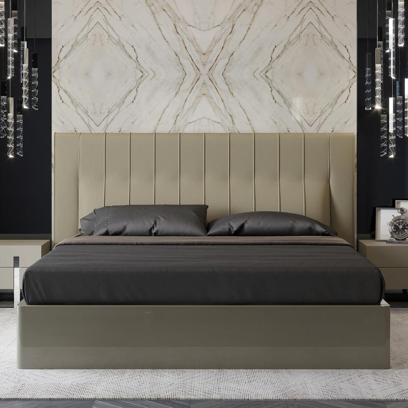 Роскошная кровать с высоким изголовьем от бренда MOD Interiors, коллекция Vigo. Модель отлично впишется как в современный, так и в неоклассический интерьер. Оттенок крем-брюле является знаковым для коллекции Vigo и подчеркивает лаконичность глянцевых фасадов. Фигурное изголовье имеет строгий силуэт и декорировано вертикальным кантом. База кровати имеет закругленные углы — они безопасны и удобны. Размер спального места 180*200 см. Кровать оснащена подъемным механизмом и ящиком для хранения. Матрас, покрывала и подушки не входят в комплект поставки.