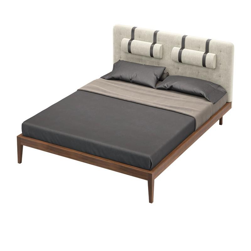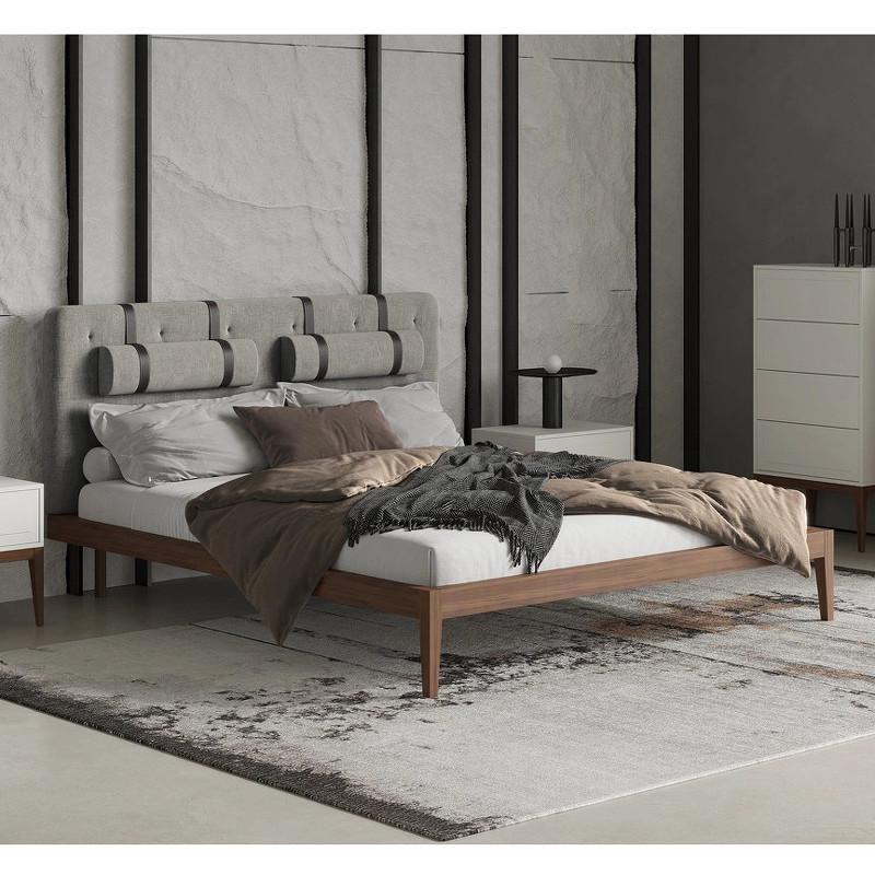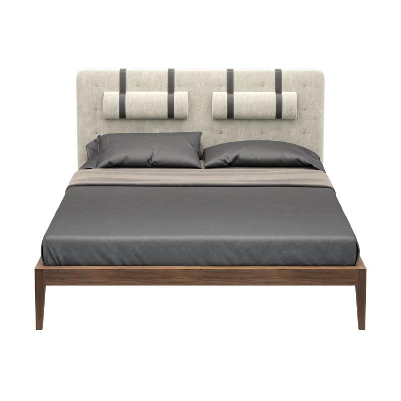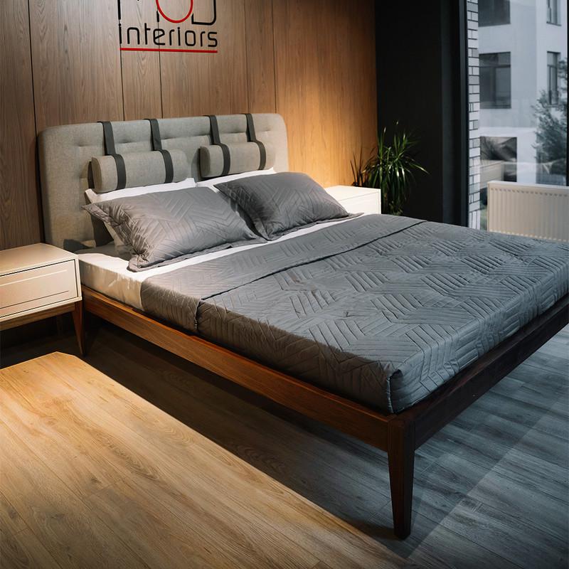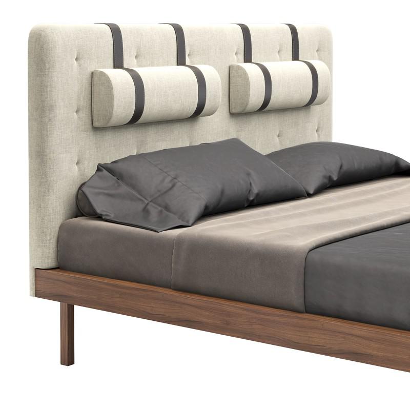 Дизайнерская кровать из коллекции Marbella (бренд MOD Interiors). На изголовье декоративные пуговицы и валики для повышенного комфорта сидения. Идеальна для тех, кто любит смотреть телевизор или сидеть за гаджетами прямо в кровати. База кровати выполнена из массива дерева, изголовье выполнено из высококачественной сертифицированной МДФ класса Е1 (Новая Зеландия). Отделка в шпоне американского ореха (Северная Америка). Ножки в зоне изголовья утоплены внутрь каркаса, что создает эффект парения при подходе к кровати сбоку. Изголовье и валики в ткани типа рогожки в серых тонах. Ремни, поддерживающие валики выполнены из эко-кожи коричневого цвета. Высоту валиков можно регулировать по вертикали. Возможно выполнение отделки изголовья в ткани из ассортимента фабрики. Спальное место у данной модели 160*200 см. Покрывала, подушки и матрас не входят в комплект поставки. Кровать поставляется с решеткой.
