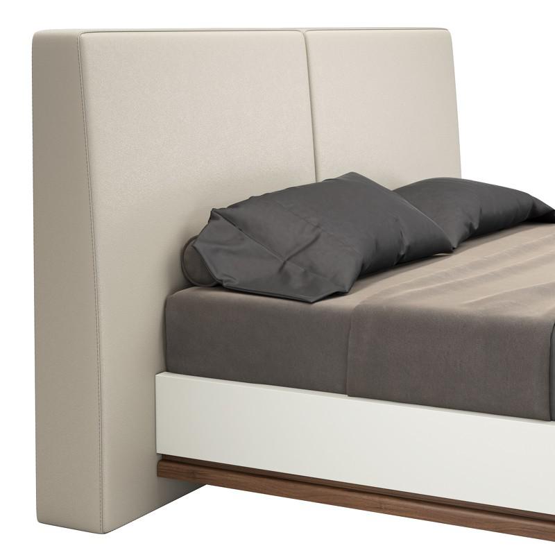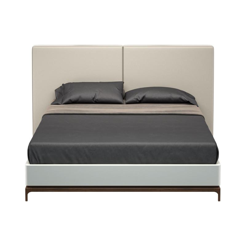 Кровать на ножках от испанского бренда MOD Interiors из популярной коллекции Calpe. Актуальная модель имеет изголовье увеличенной ширины, оно выходит за рамки основного каркаса. Кровать идеально впишется в лаконичный интерьер в современном стиле. Изголовье и каркас кровати выполнен из МДФ высокой прочности, отделка матовый лак светло-серого оттенка. Тонкая база кровати изготовлена из массива дерева, отделка натуральный шпон ореха. Изголовье обито качественной эко-кожей. На заказ доступно несколько оттенков в ассортименте. Размер спального места 160*200 см. Покрывала, подушки и матрас не входят в комплект поставки.