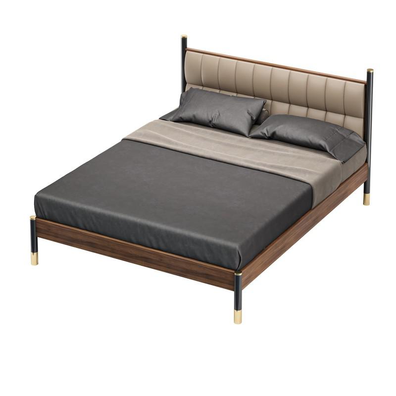 Легкая двуспальная кровать с традиционным силуэтом из коллекции Benissa от испанского бренда MOD Interiors. Изголовье представляет собой классический для Испании вариант с двумя башенками. Форма делает эту модель универсальным вариантом для современного интерьера. Также мебель данной коллекции прекрасно подойдет в интерьер в стиле loft. Черный металл отлично впишется в пространство в природной цветовой гамме с черными или серыми акцентами. Каркас кровати выполнено из высококачественного МДФ. Отделка - натуральный шпон американского ореха. Металлические ножки в матовом черном лаке, детали в цвете латунь. Изголовье обито эко-кожей в бежевых оттенках. Размер спального места у этой модели 160*200 см. Кровать поставляется с решеткой. Текстиль и матрас не входят в комплект поставки.