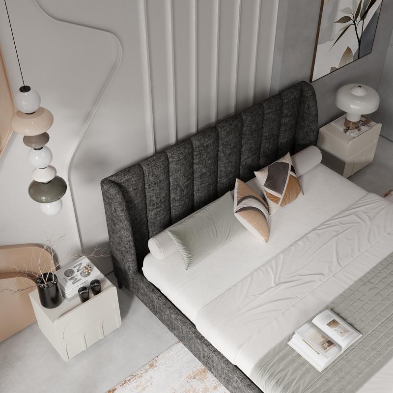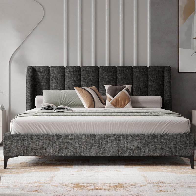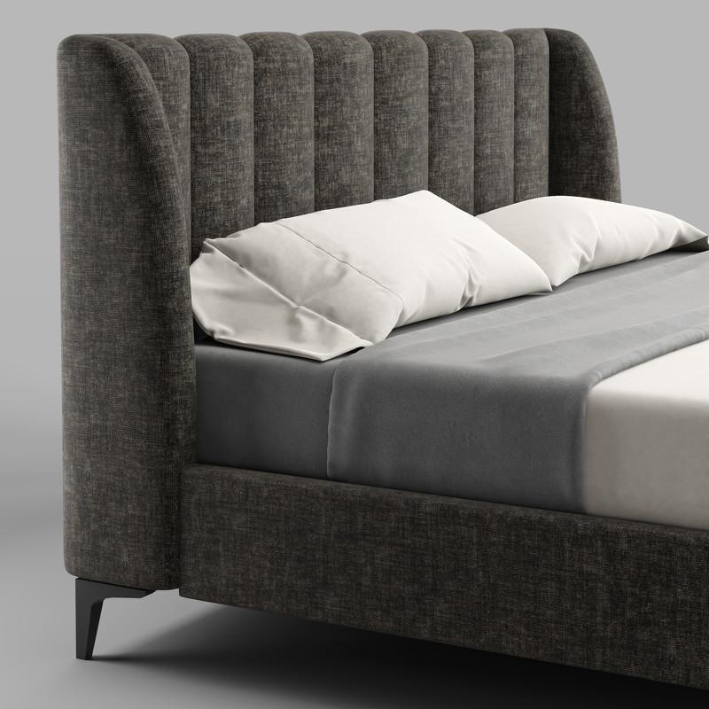 Дизайнерская кровать из коллекции Wabi Sabi от бренда MOD Interiors. Идеальный вариант для современной или неоклассической спальни. Классический силуэт, который украсит своей правильной геометрией любой интерьер. Выбор ткани и оттенка обивки возможен из широкого ассортимента фабрики! Кровать изготовлена из массива сосны, мягкое изголовье декорировано вертикальной стежкой. Ламели изготовлены из массива. Ножки — прочный высококачественный металл. Размер спального места 180*200 см. В комплекте идет решётка. Кровать поставляется без матраса и постельных принадлежностей.