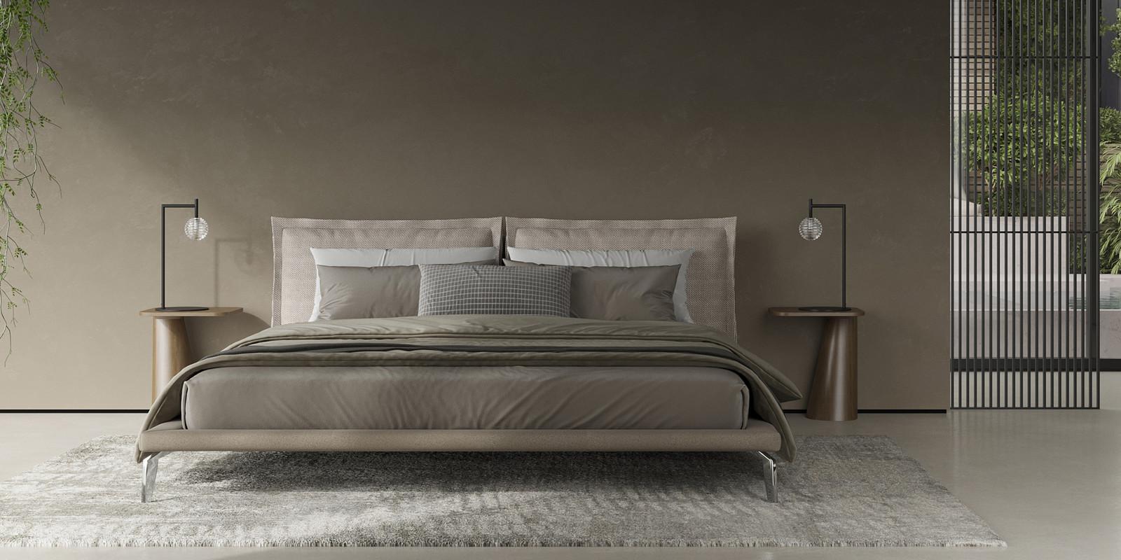 Дизайнерская модель из коллекции Telas New от бренда MOD Interiors. Каркас кровати изготовлен из натурального массива дерева, ножки — из высококачественного прочного металла. Модель выполнена в современном стиле и дополнена в зоне изголовья двумя объемными подушками. Обивка каркаса и изголовья выполнена в одной ткани, подушек — в другой. Размер спального места 180*200 см. В комплекте идет решетка. Кровать поставляется с решеткой, но без матраса и постельных принадлежностей.