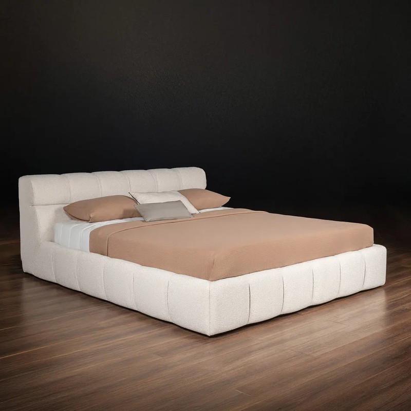 Уникальная кровать Wanda от бренда MOD Interiors. Имеет необычный дизайн изголовья и каркаса в текстиле с вертикальной дизайнерской стяжкой. Отлично подойдет для интерьера спальни в таких стилях, как современный, скандинавский, ваби-саби, джапанди. Каркас кровати изготовлен из высококачественной МДФ высокой плотности и березовой фанеры (Россия), многослойного материала, изготавливаемого путём склеивания специально подготовленного шпона. Для повышения прочности фанеры слои шпона накладываются так, чтобы волокна древесины каждого листа были перпендикулярны соседним, поэтому, чтобы направления внешних слоёв совпадали, количество слоёв шпона обычно нечётное: три и более. Ламели решетки изготовлены из 100% массива березы. Обивка - ткань букле в светло-бежевом, почти белом оттенке. Задняя часть изголовья обита основной тканью, что позволяет расположить кровать в любой части спальни. Наполнитель - Экологичный пенополиуретан (Россия). Размер спального места 180*200 см. Кровать поставляется без матраса и постельных принадлежностей. Тип ткани – букле.. Устойчивость к истиранию: >90 000 циклов. Плотность: 410 гр/м². Состав ткани: Полиэстер 100 %. Плотное переплетение ткани букле делает ее устойчивой к механическим повреждениям. Мягкая меланжевая нить придает натуральность. Объемный ворс делает ткань приятной на ощупь. Безопасный состав для людей с аллергией, болеющих астмой и другими заболеваниями верхних дыхательных путей. Уход за тканью - Сухая уборка пылесосом с мягкой щеткой. Влажная уборка микрофиброй. Беречь от прямых солнечных лучей. Размещать не ближе 40-60 см от источников тепла. Не использовать абразивные средства. Не использовать отбеливатель.