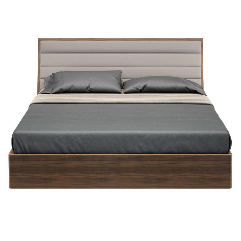 Комфортная двуспальная кровать из коллекции Ronda от бренда MOD Interiors с подъемным механизмом и отсеком для хранения белья. Модель отлично подойдет для интерьера в современном стиле. Каркас кровати изготовлен из МДФ высокой плотности из Новой Зеландии. Отделка - натуральный шпон американского ореха. Слегка изогнутое изголовье обито эко-кожей в приятном сером оттенке. Скругленные углы базы делает ее безопасной, при этом сохраняя эффект максимально натуральности и экологичности. Отсутствие тканевой обивки делает кровать анти аллергичной. Размер спального места — 160*200 см. Покрывала, подушки и матрас не входят в комплект. Высота изножья от пола до матраса 29.5 см Размер декоративной стежки на изголовье 14.1 см Высота декоративной стежки (без учета деревянной части) 4.6 см Расстояние сверху до первой стежки на изголовье 2.5 см Ширина изголовья 4.8 см Ширина изгиба изголовья 13.2 см Высота внутреннего ящика 16.5 см Рекомендуется использовать матрас высотой 18-21 см