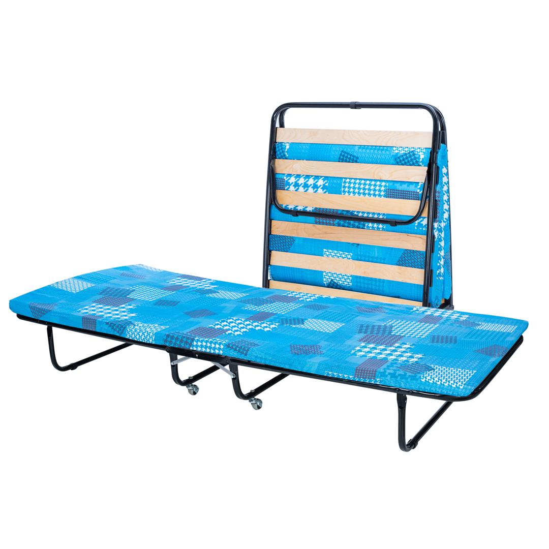 206 модель раскладной кровати, обладает особой прочностью, благодаря ламелям в основании и стальным трубам каркаса диаметром 25 мм. Толщина матраса 5 см, наполнитель матраса – листовой поролон, который отличается объемностью и удобством. Допустимая нагрузка для кровати 206 – 120 кг. * ВАЖНО! Обратите внимание, что расцветка и рисунок матраса могут отличаться от заявленных на фотографии.