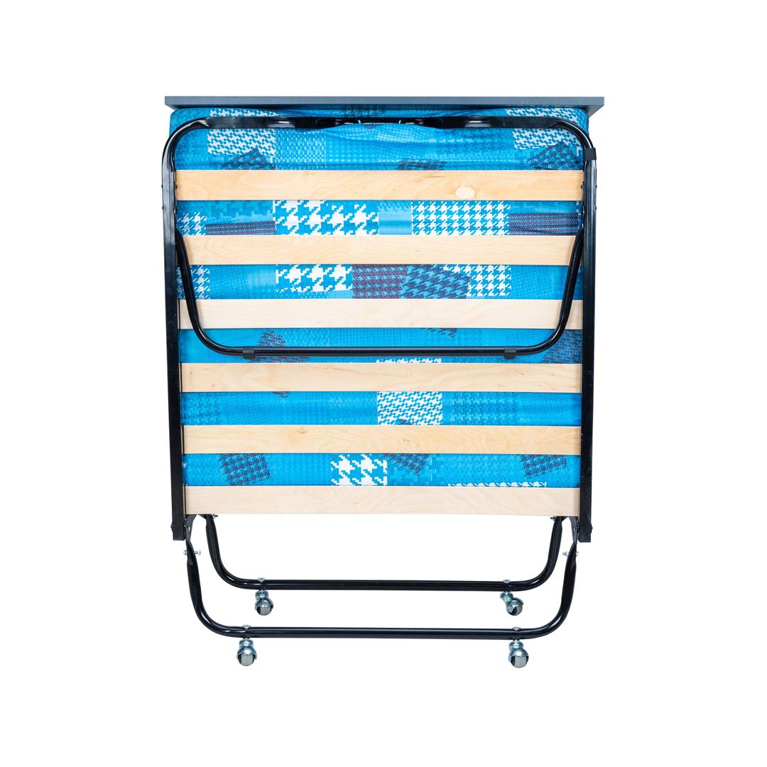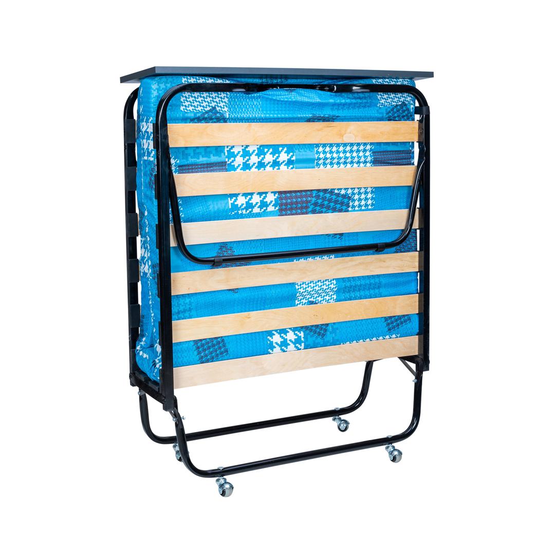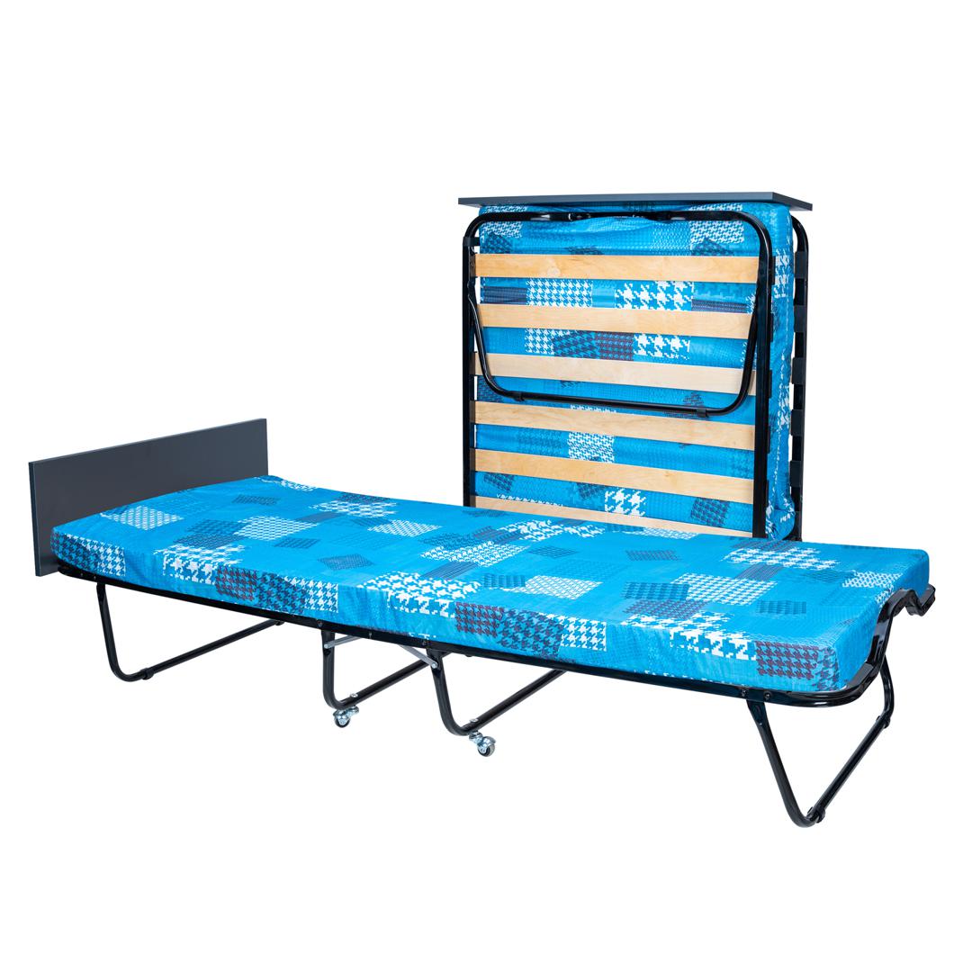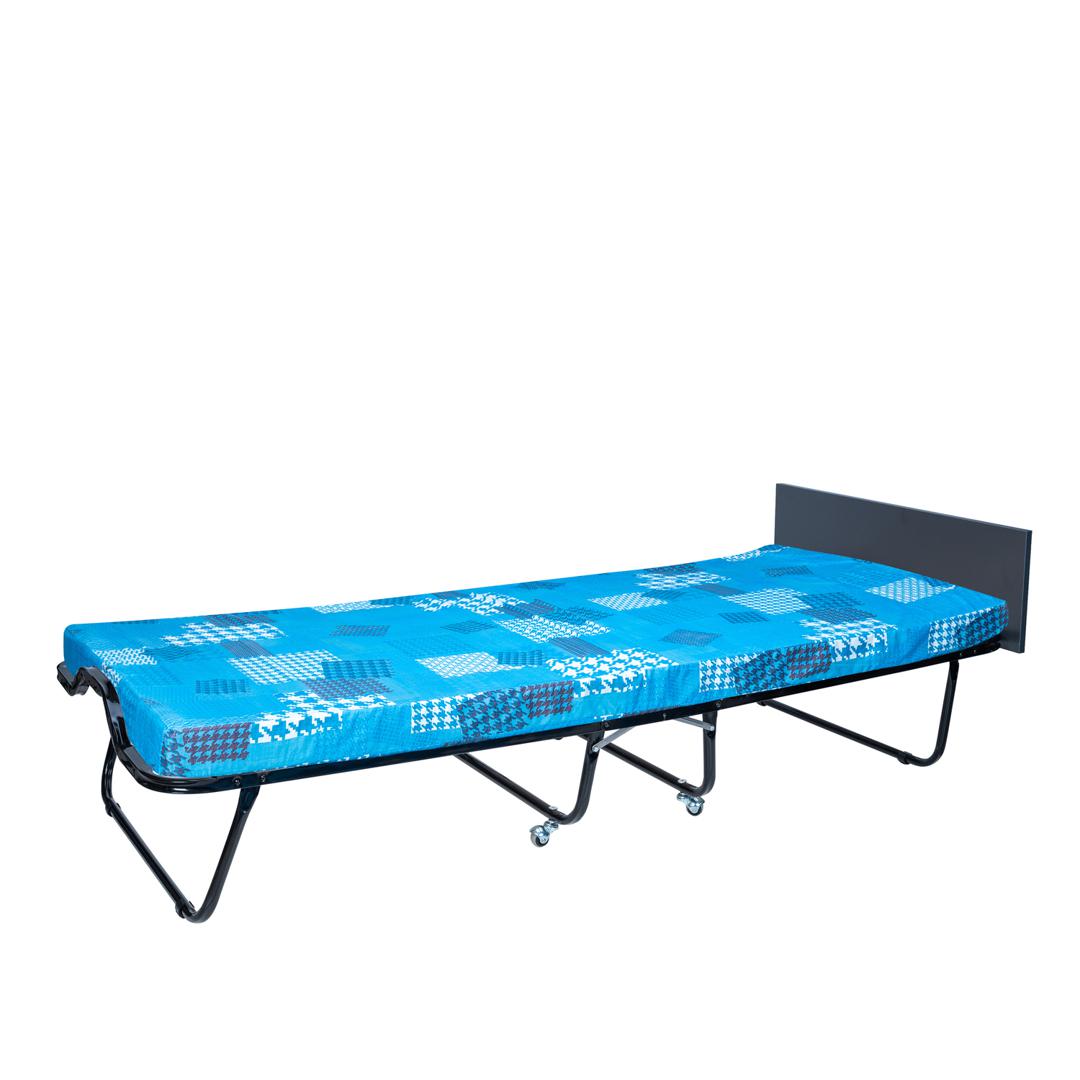 Раскладная кровать 208 модели с изголовьем, которое не дает упасть подушке во время сна и делает отдых максимально комфортным. Тип основания кровати – ламели, стальные трубы каркаса квадратного сечения, имею размер 25х25 мм. благодаря чему раскладная кровать выдерживает нагрузку до 120 кг. Удобный матрас наполнен листовым поролоном и имеет толщину 90 мм. * ВАЖНО! Обратите внимание, что расцветка и рисунок матраса могут отличаться от заявленных на фотографии.