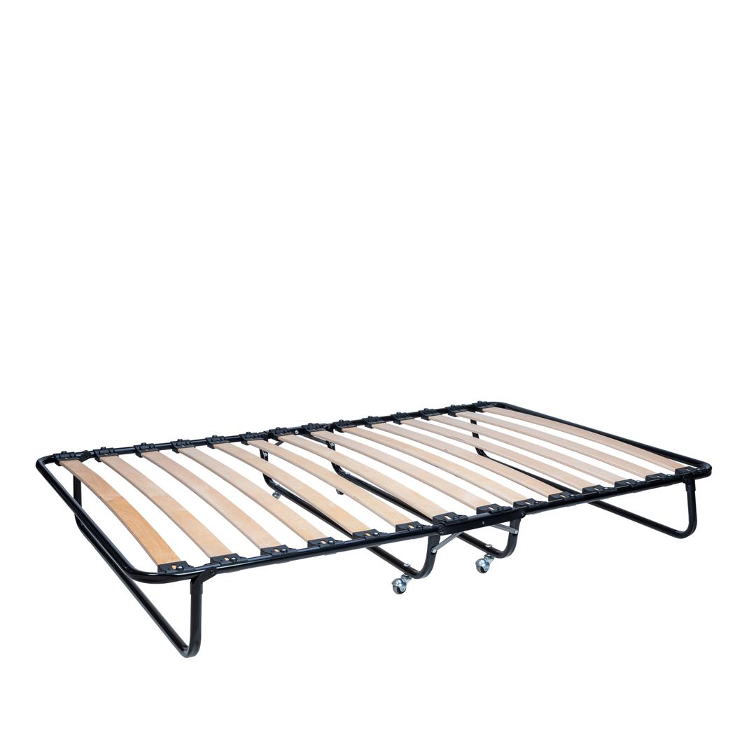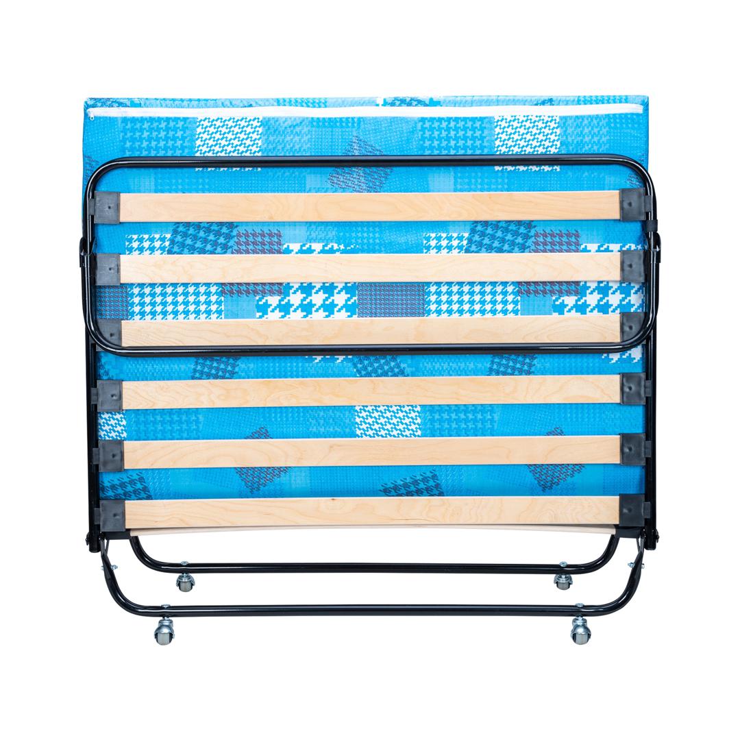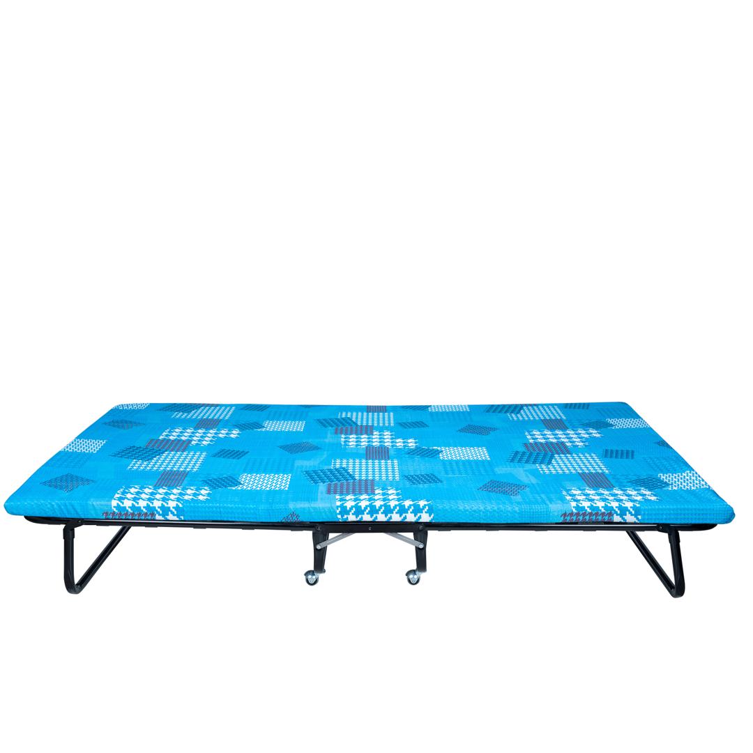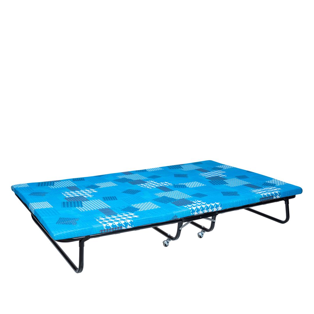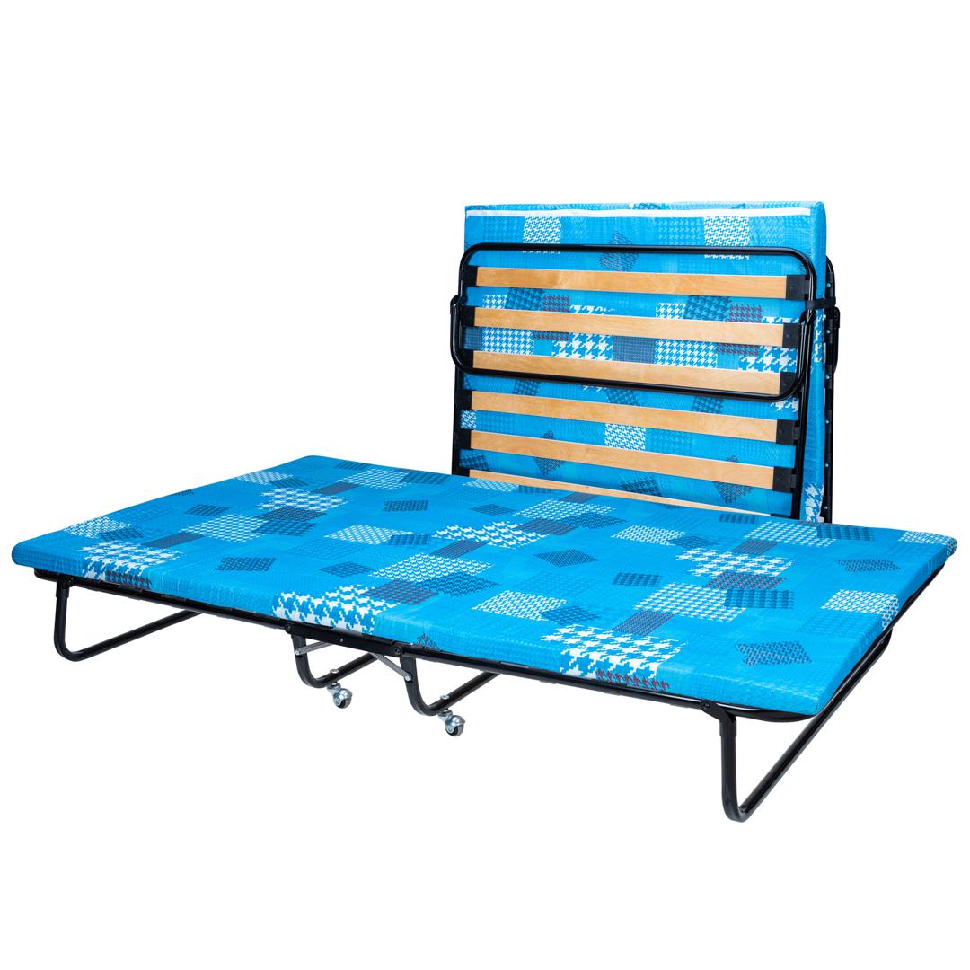 Двуспальная раскладная кровать модели 217 отличается повышенной прочностью и выдерживает до 200 кг. Благодаря стальному основанию и диаметру труб каркаса 25 мм. Кровать имеет удобный поролоновый матрас толщиной 50 мм. Тип основания – ламели. * ВАЖНО! Обратите внимание, что расцветка и рисунок матраса могут отличаться от заявленных на фотографии.