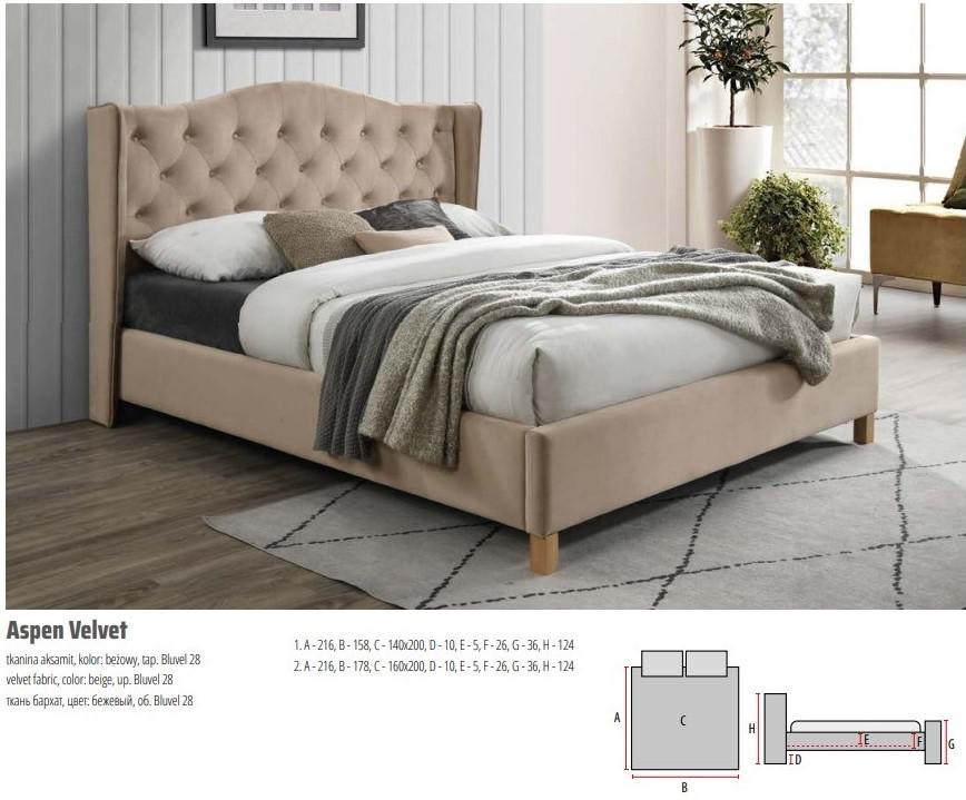 Кровать Signal Кровать Signal ASPEN VELVET BLUVEL 28 (бежевый/дуб) 160/200 арт. ASPENV160BD