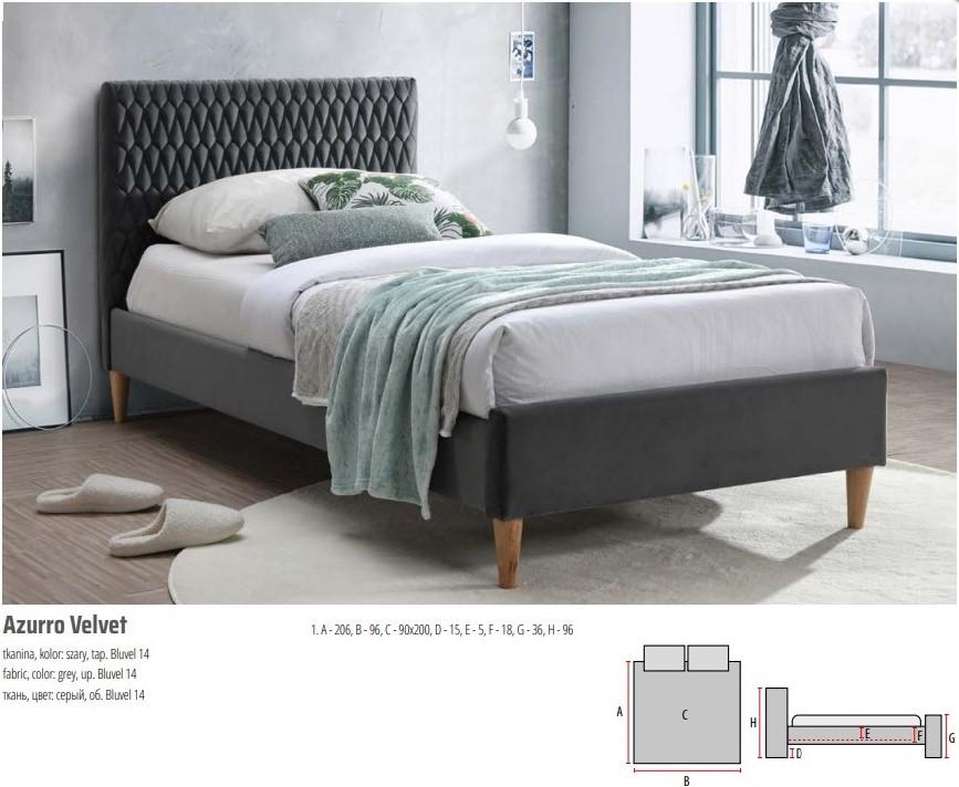 Кровать Signal Кровать Signal AZURRO VELVET BLUVEL 14 (серый/дуб) 90/200 арт. AZURROV90SZD