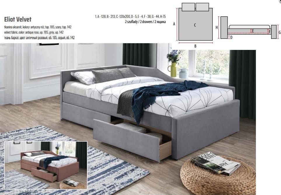 Кровать Signal Кровать Signal ELIOT VELVET (серый) 120/200 арт. ELIOTV120SZ