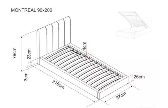 Вес, кг: 31 / Высота (см): 79 / Гарантия, мес.: 12 / Глубина (см): 215 / Количество коробок: 2 / Материал каркаса: вельвет / Необходимость сборки: да / Размер матраса (см): 90/200 / Размер упаковки 1: 1,26/1,01/0,1 / Размер упаковки 2: 0,27/2,08/0,13 / Страна производитель: Китай / Цвет: серый / Ширина (см): 97