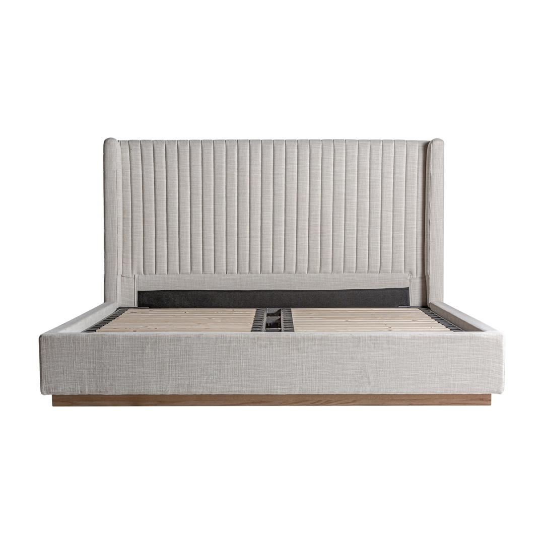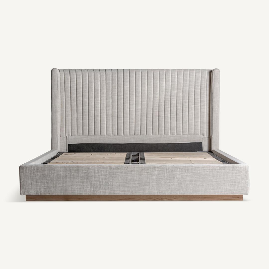 Кровать Aunac серого цвета в стиле арт-деко. Изготовлен из полиэстера в сочетании с сосновой древесиной и поролоном. Съемное изделие.