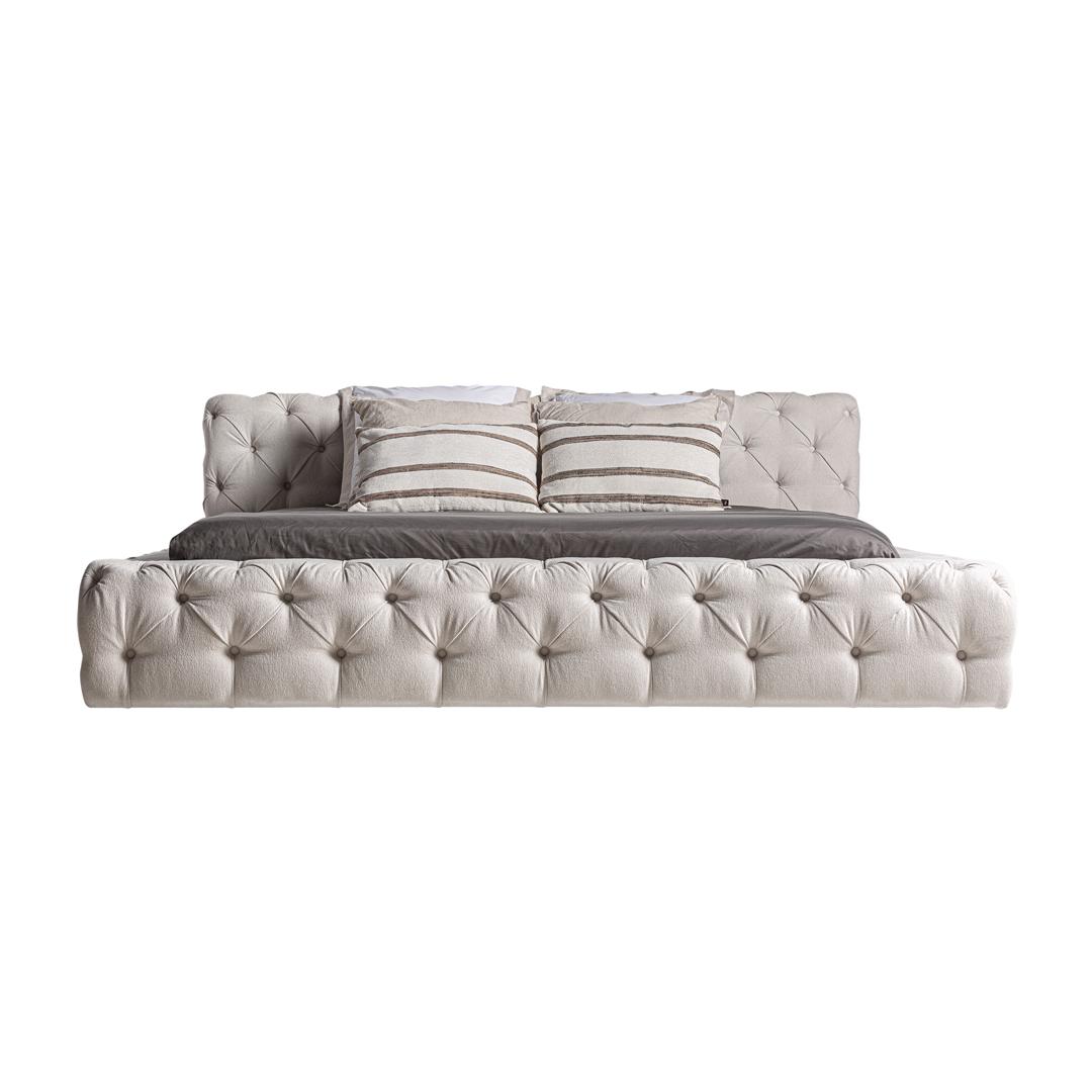 Кровать Santorini — изысканная модель светло-бежевого оттенка с стеганой отделкой на изголовье и основании, идеально подходящая для тех, кто ищет неподвластный времени и уютный стиль в своем спальном пространстве.