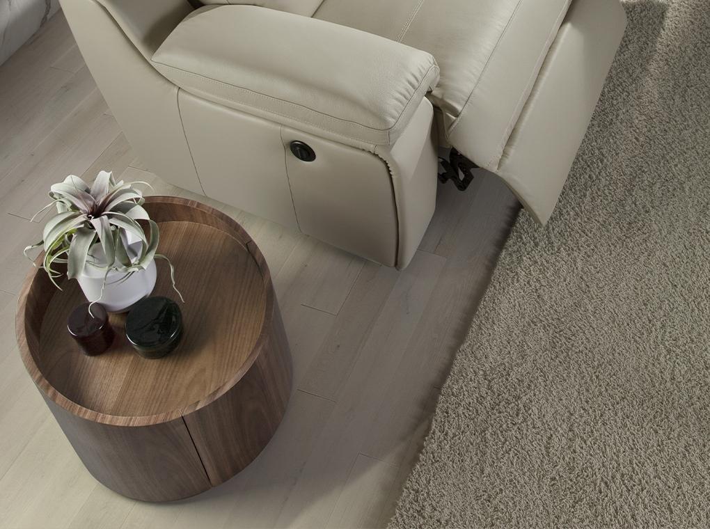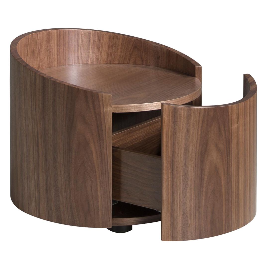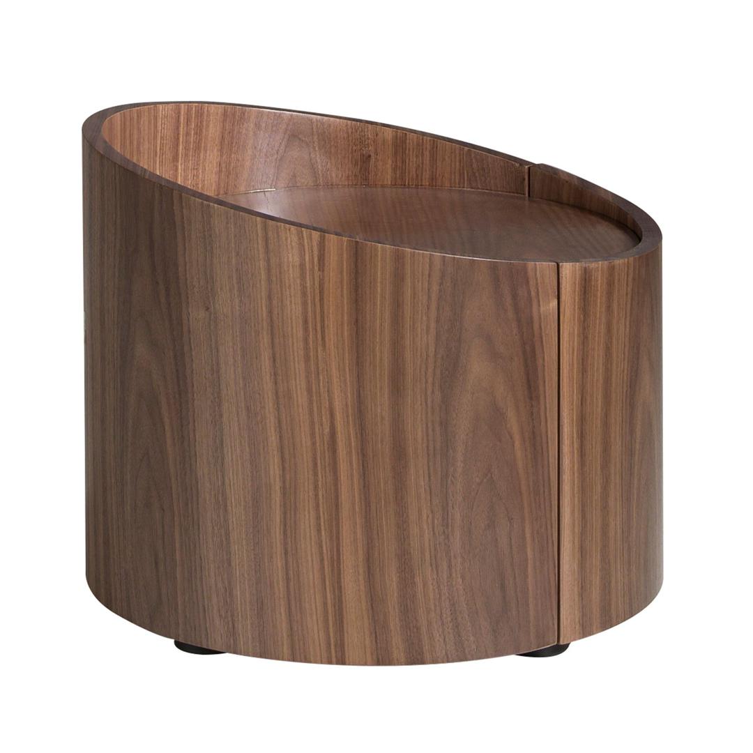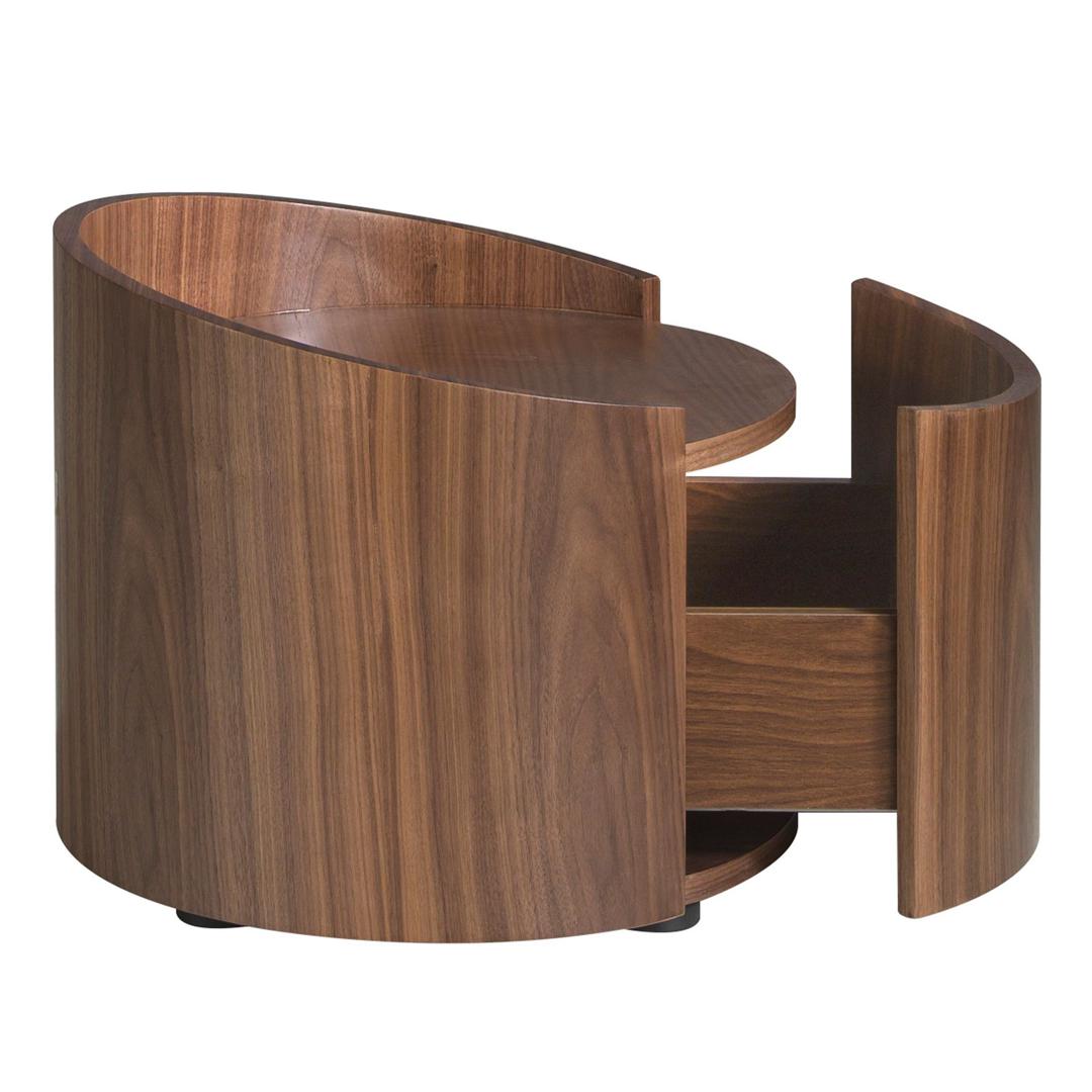 Круглый столик-тумбочка со скрытым ящиком из шпона орехового дерева.