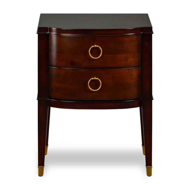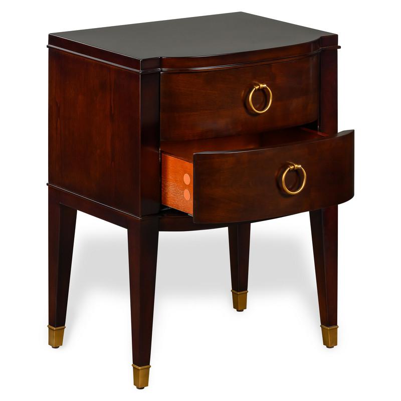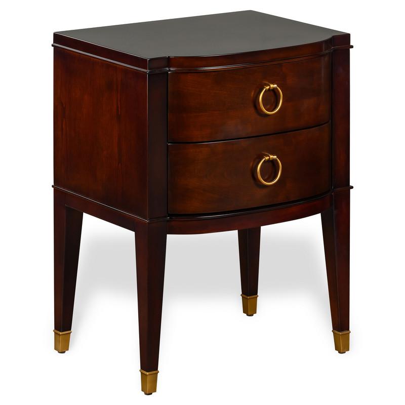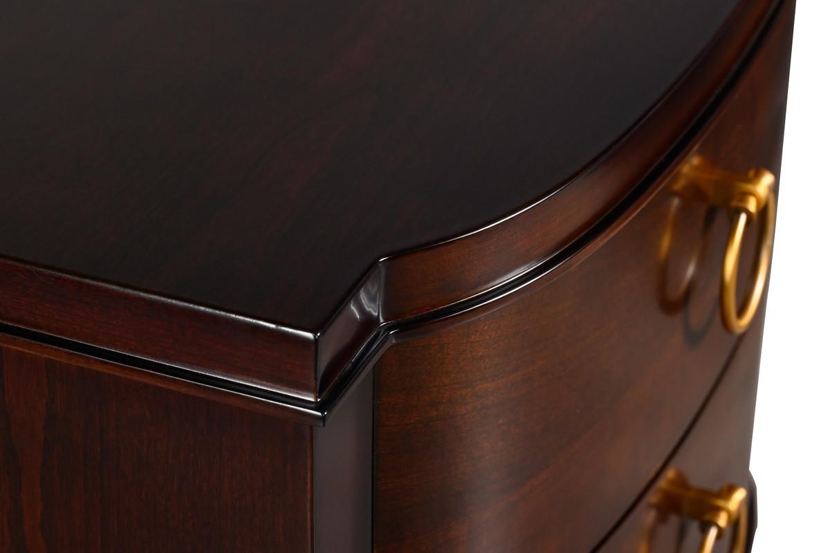 Изящная прикроватная тумбочка Modena от итальянского бренда Fratelli Barri. Тумбочка в неоклассическом стиле, с двумя выдвижными ящиками. Закругленные фасады. Отделка - шпон вишни. На ножках металлические колпачки. Выполнена из массива дерева и высококачественного МДФ класса Е1. Цвет фурнитуры - латунь. Ящики оснащены доводчиками для плавного закрывания. В данной коллекции есть более широкая тумбочка - 65 см.