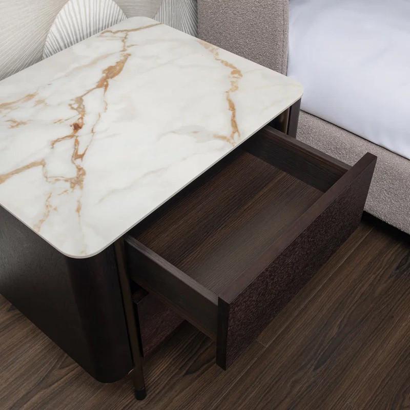 Прикроватная тумбочка от итальянского бренда Fratelli Barri оснащена двумя выдвижными ящиками, благодаря которым можно обеспечить удобное хранение. Ящики оснащены механизмом "push to open".