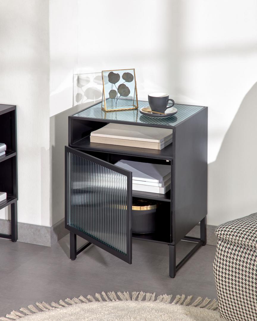 Сталь - самый популярный материал в мебели для спальни, поэтому нет причин, по которым она вам не понравится! Промышленный дизайн с хрустальной передней панелью делает эту прикроватную тумбочку совершенно оригинальным модным штрихом в вашей спальне.