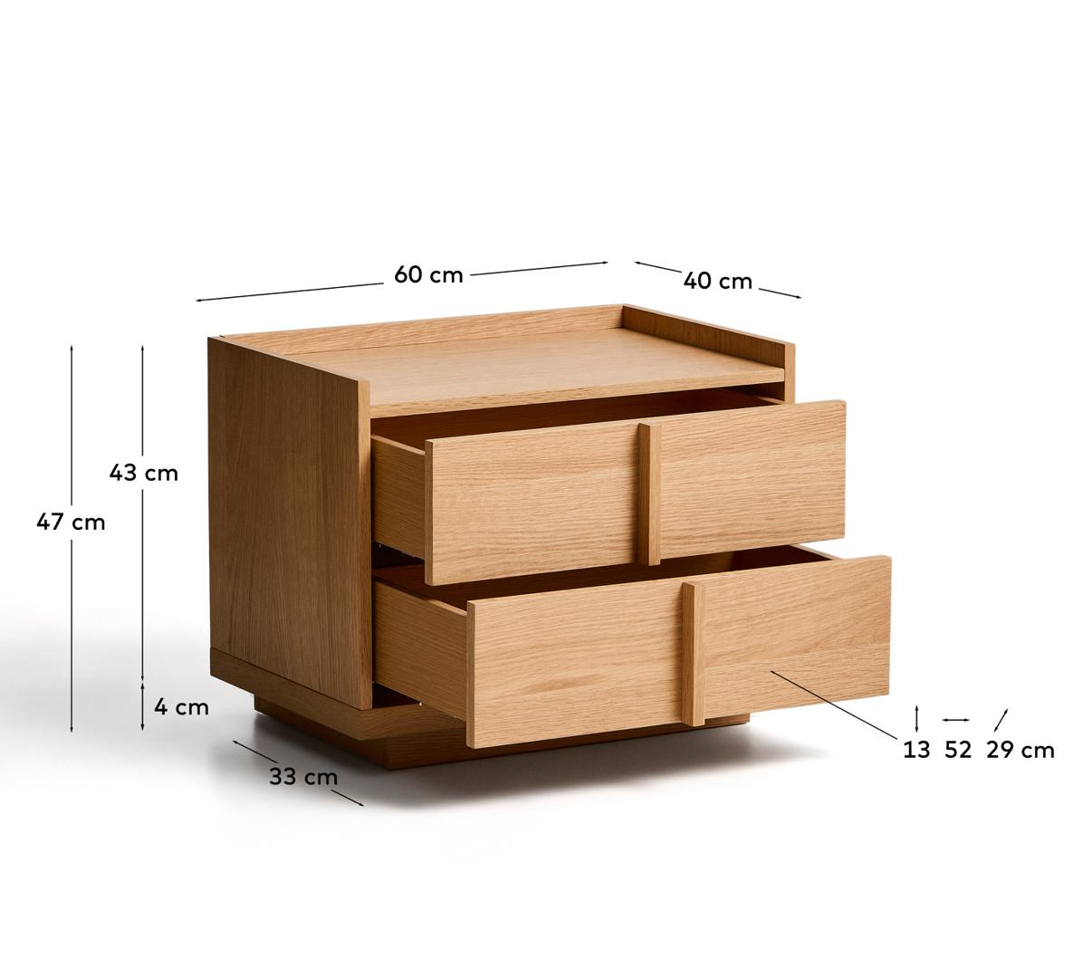 Тумбочка La Forma (ех Julia Grup) Прикроватная тумба Onix, 2 ящика, шпон дуба натурального цвета арт. 503794