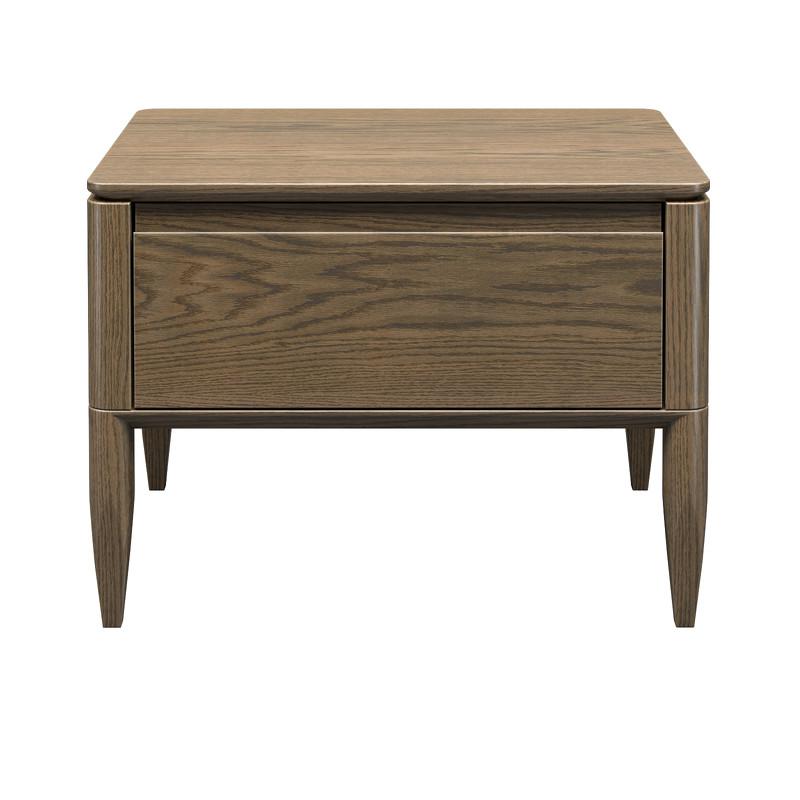 Прикроватная тумбочка с ящиком из коллекции Paterna от MOD Interiors в отделке натуральным шпоном дуба представляет собой эффектное сочетание стиля и функциональности. Необычный дизайн ножек в форме заточенного карандаша является отличительной чертой коллекции Paterna. Лаконичный европейский дизайн модели дополнен натуральными текстурами древесины, что привносят в интерьер уют и теплоту. Просторная верхняя поверхность подходит для размещения лампы или книг, а вместительный ящик обеспечивает удобное хранение личных вещей. Этот предмет мебели легко вписывается в любой интерьер, создавая атмосферу гармонии и стиля.
