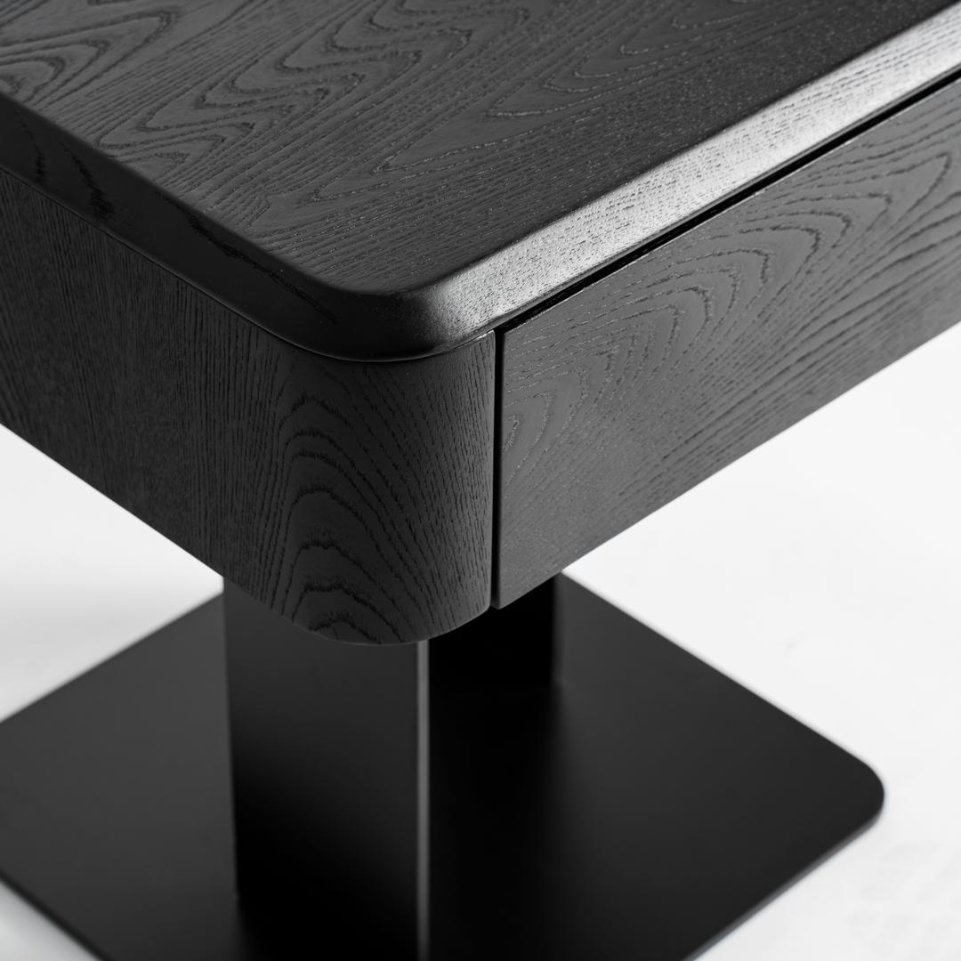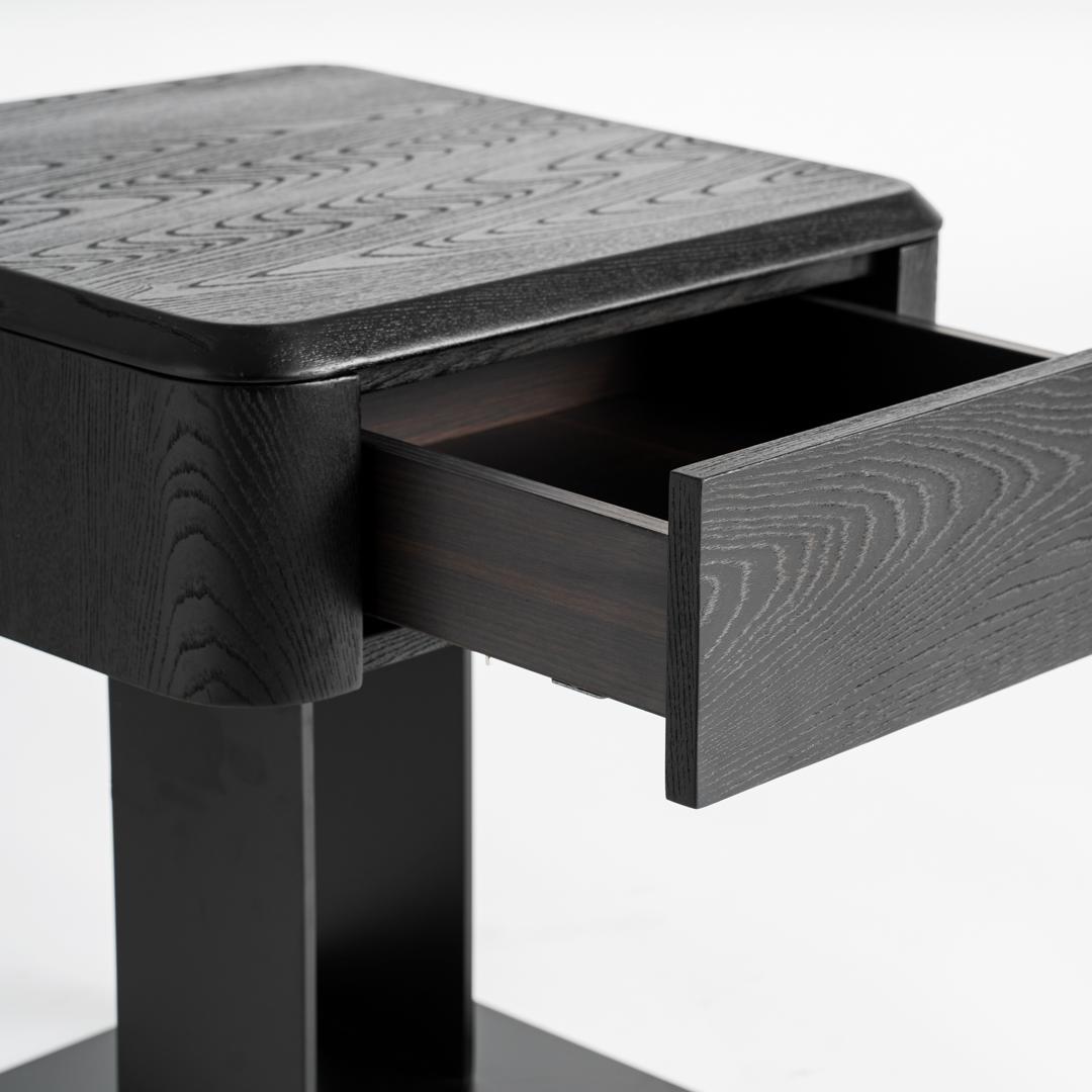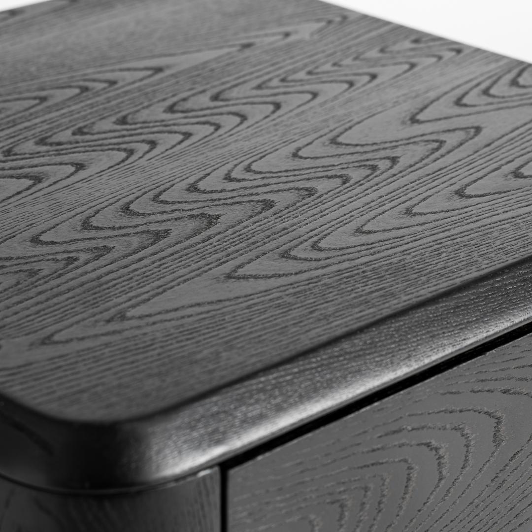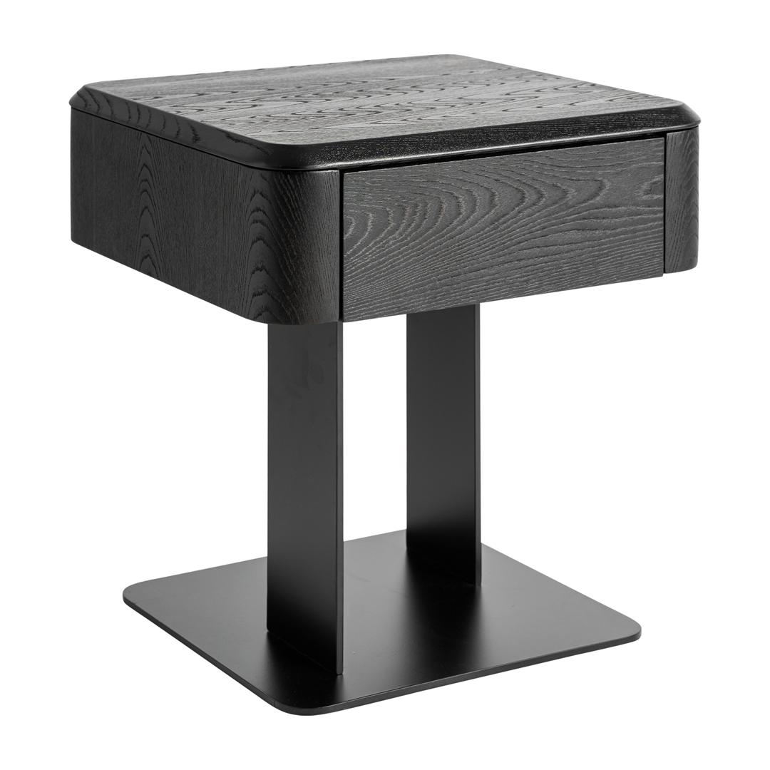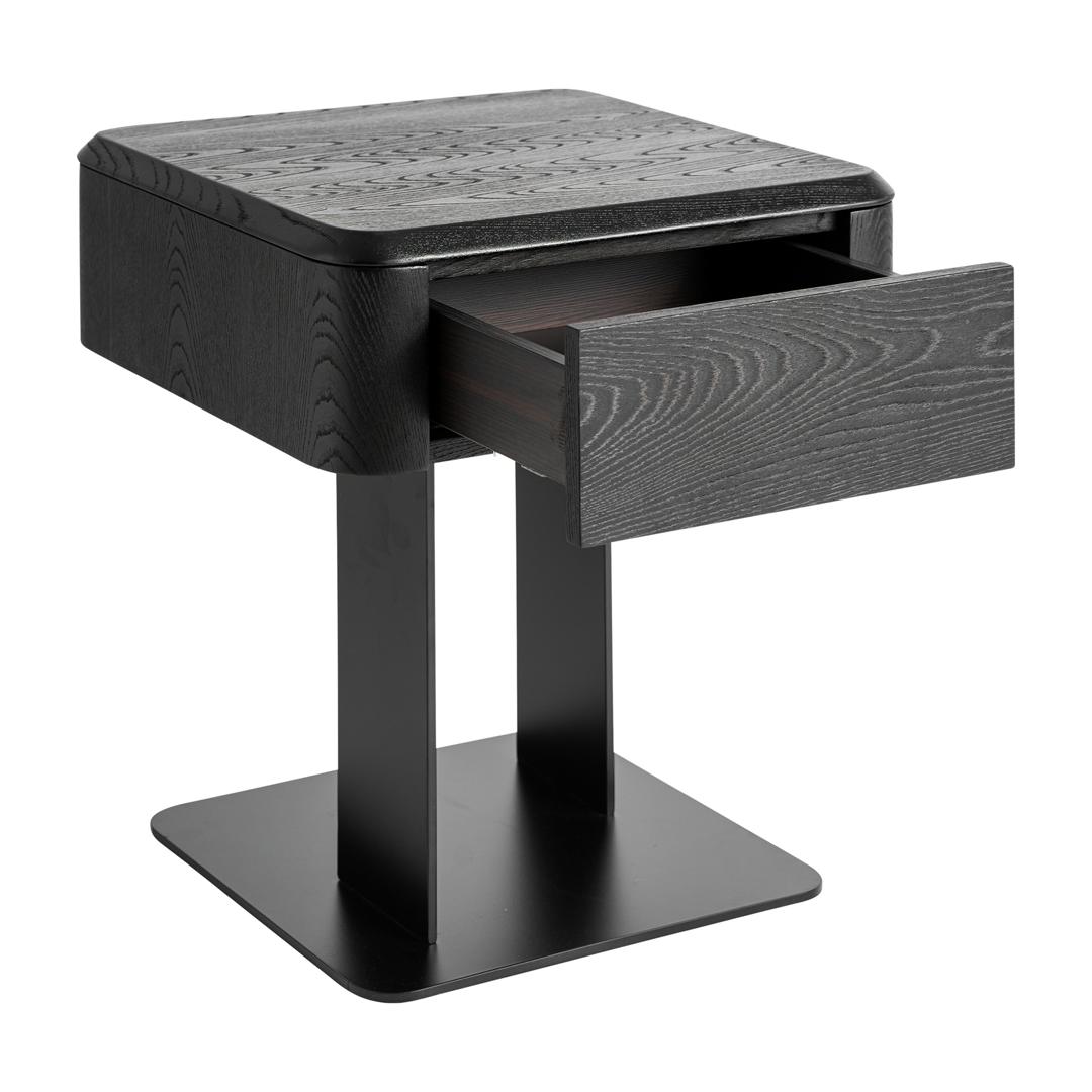 Прикроватная тумбочка Caiza в современном стиле, изготовлена из черного МДФ в сочетании со шпоном черного вяза и черным железом. Ширина: 46 см, Глубина: 46 см, Высота: 51 см