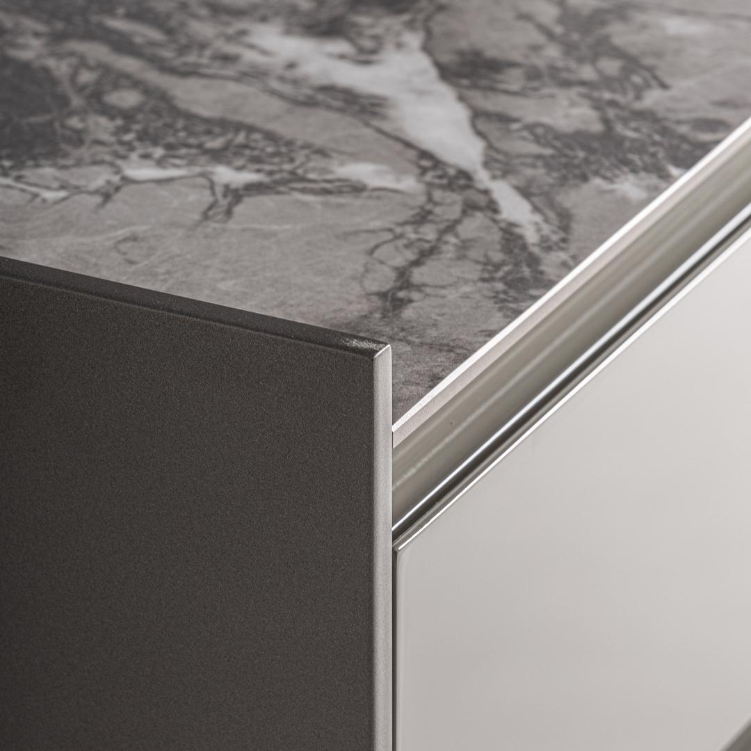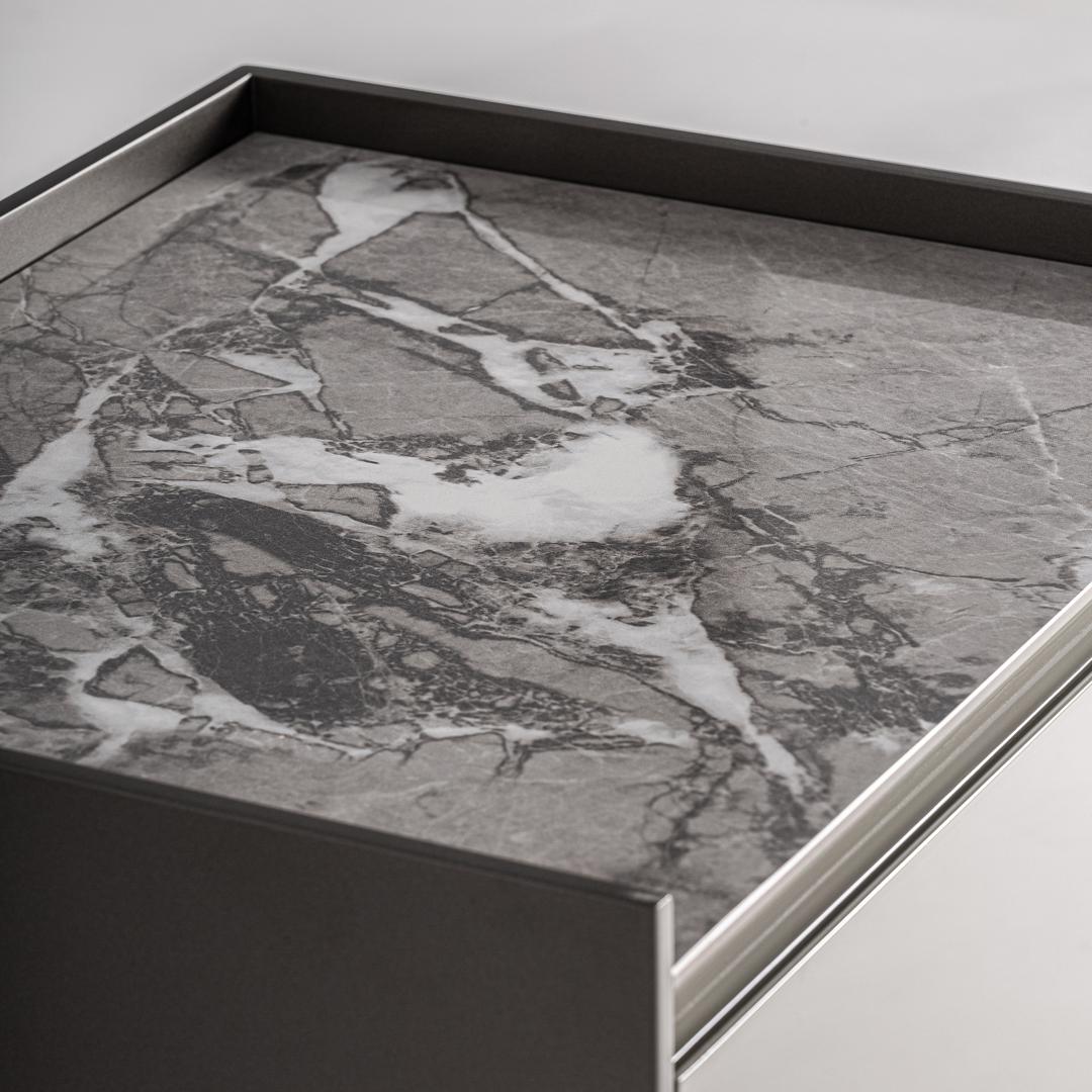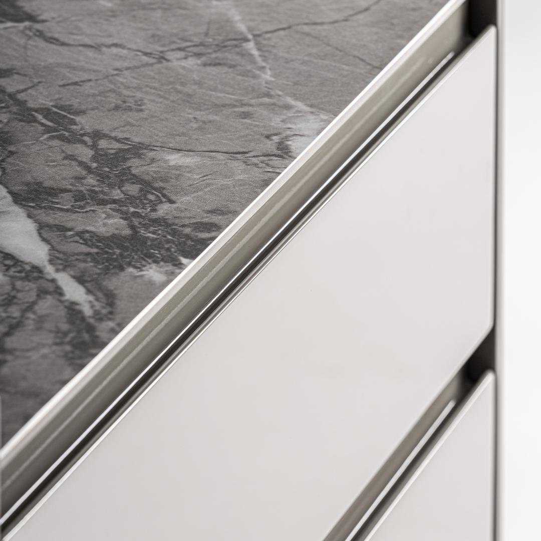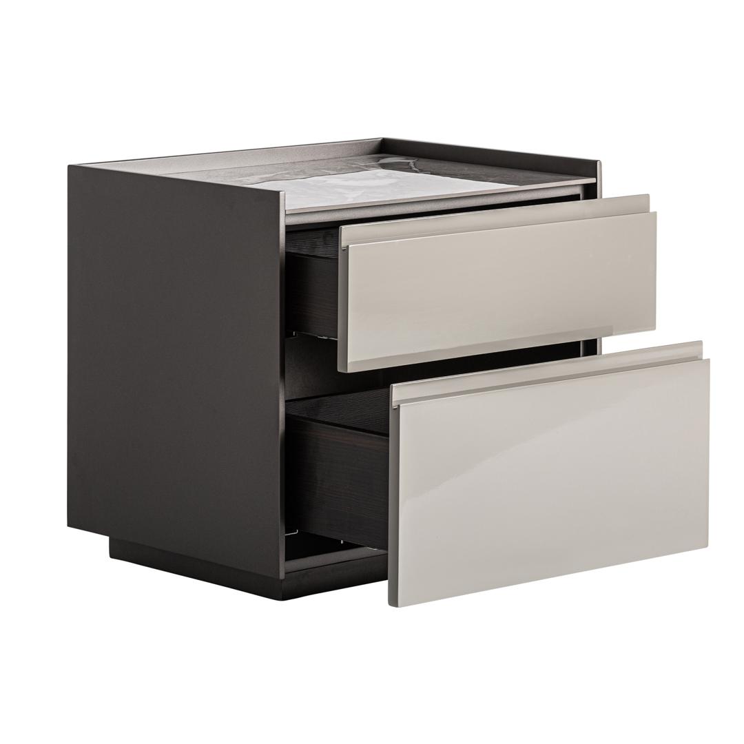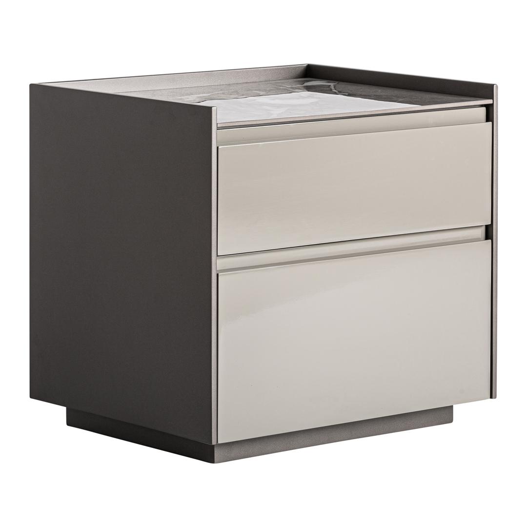 Прикроватная тумбочка Rotwell, бежевого цвета, стиль арт-деко. Изготовлен из древесины DM в сочетании с спеченным камнем. Ширина: 53 см, Глубина: 43 см, Высота: 50 см.